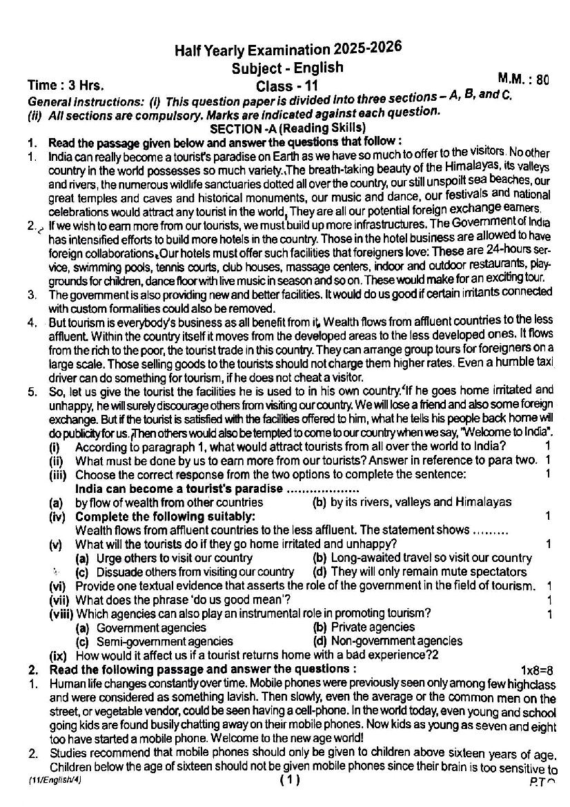 UK Board Class 11 English half yearly Question Paper 2025-26 PDF – Click Here to Download Question Paper PDF