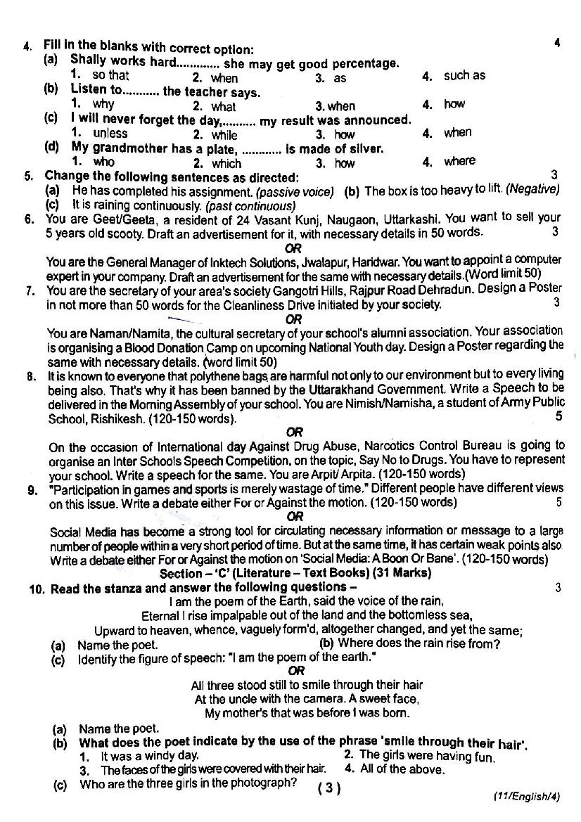 | Study Material Here | UK Board Previous Year Question Paper of Class 11 English |