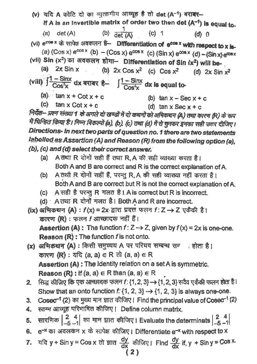 The UK Board Previous Year Question Paper for class 12th Mathematics half yearly examination is as follows.