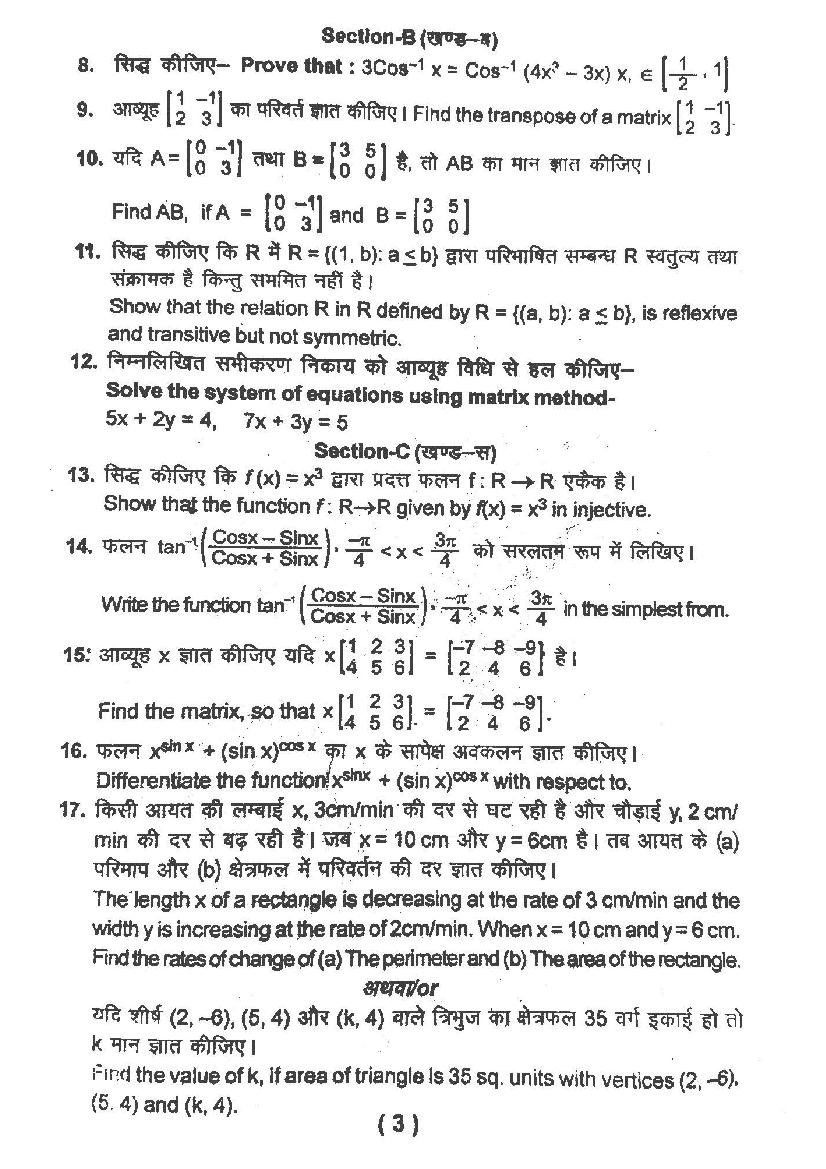 Study Material HereUK Board Previous Year Question Paper of Class 12 Mathematics