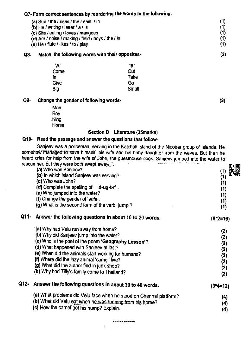 | Study Material Here | UK Board Previous Year Question Paper of Class 8 English |