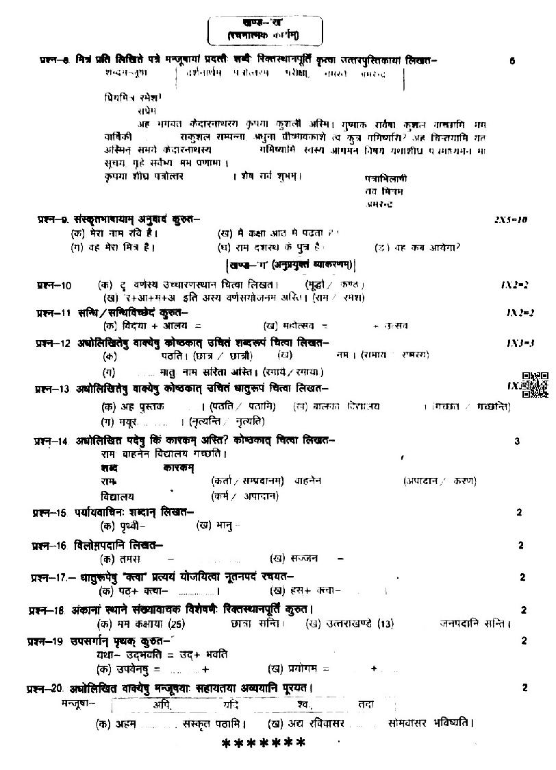 | Study Material Here | UK Board Previous Year Question Paper of Class 8 Sanskrit |