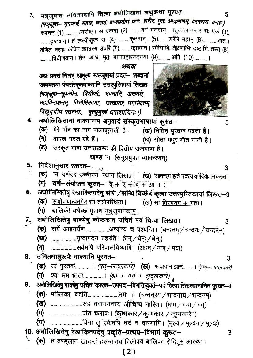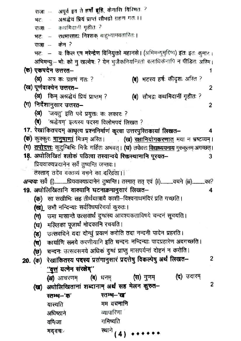 | Study Material Here | UK Board Previous Year Question Paper of Class 9 Sanskrit |