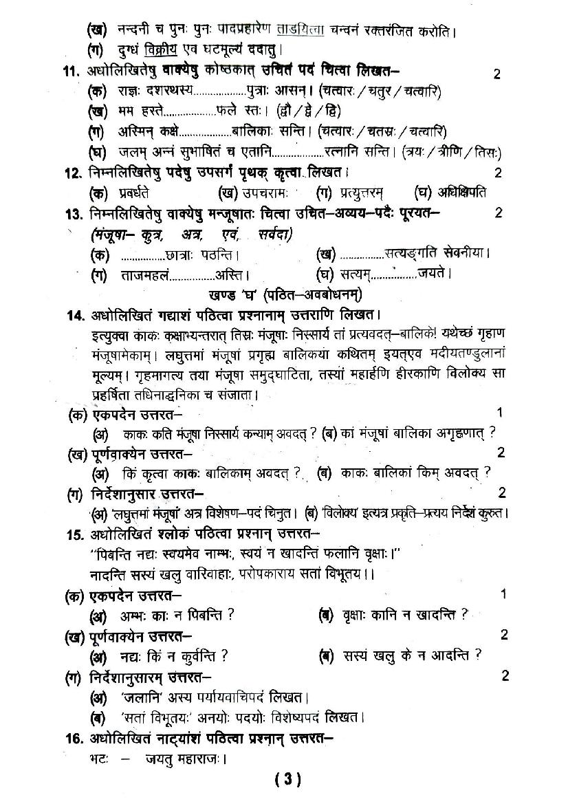 You can check the latest available mid term exam Sanskrit question paper below-