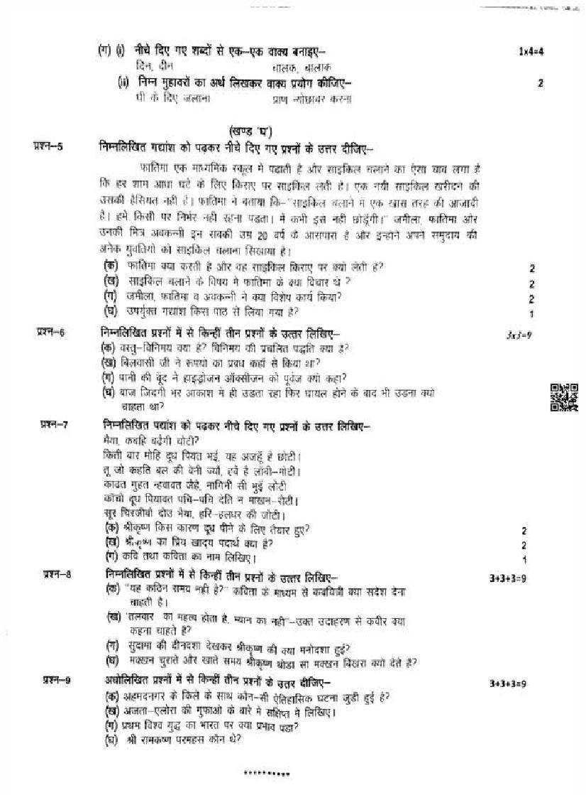 The Uttarakhand Board question paper of class 8 for Hindi is as follows.