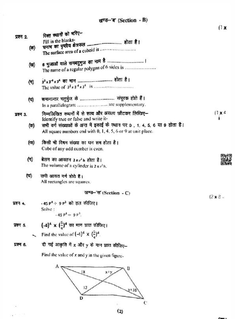 The Uttarakhand Board question paper of class 8 for Maths is as follows.