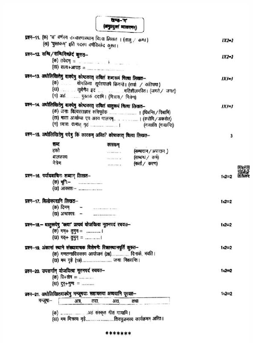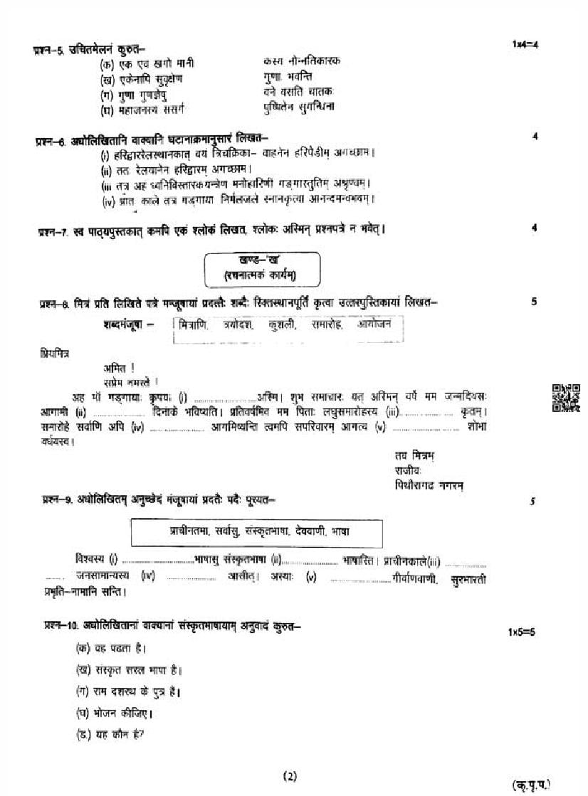 The Uttarakhand Board question paper of class 8 for Sanskrit is as follows.