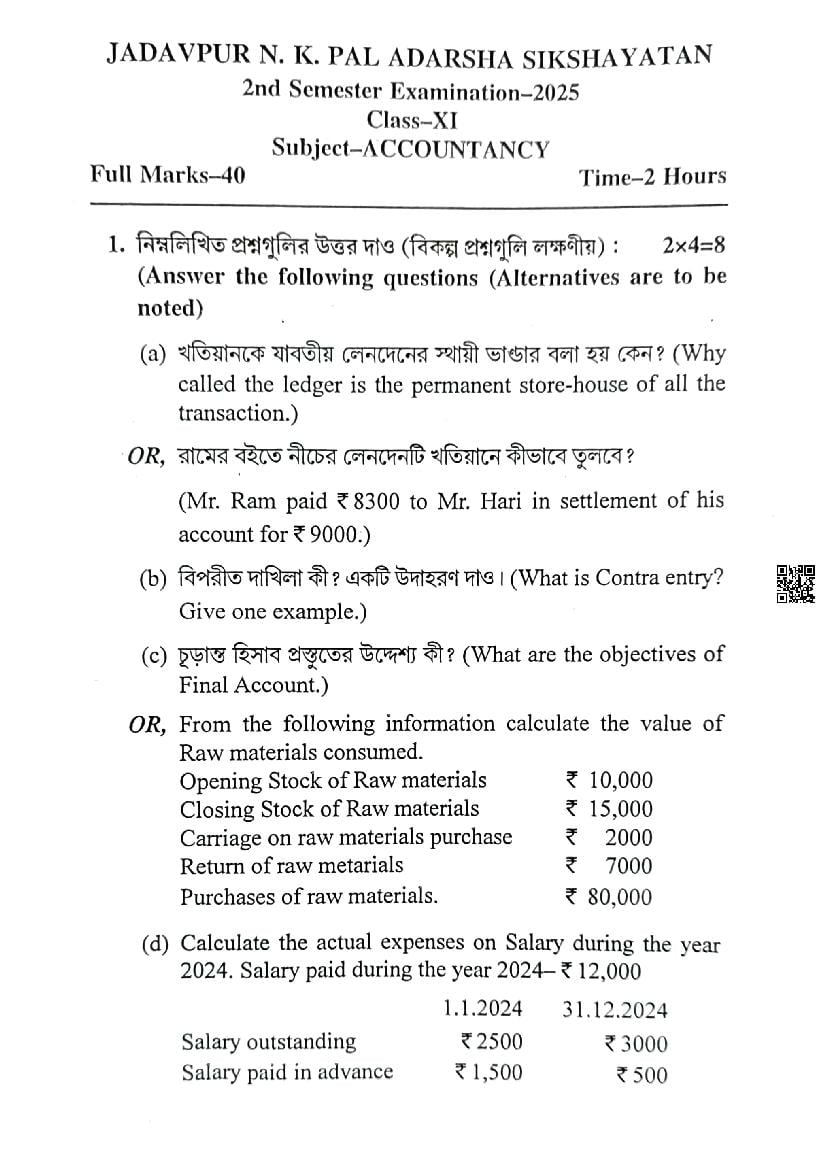 If you have any queries on WB Class 11 Accountancy Question Paper 2025, then please ask in comments below.