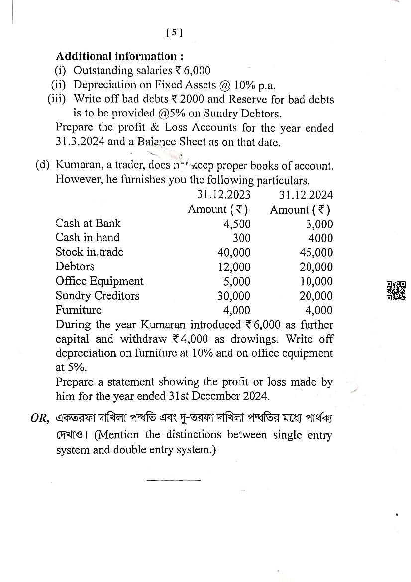 The previous year question paper of West Bengal Board for class 11 (Class 11) Accountancy is as follows.