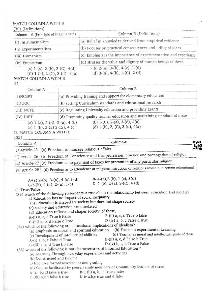 The previous year question paper of West Bengal Board for class 11 (Class 11) Education is as follows.