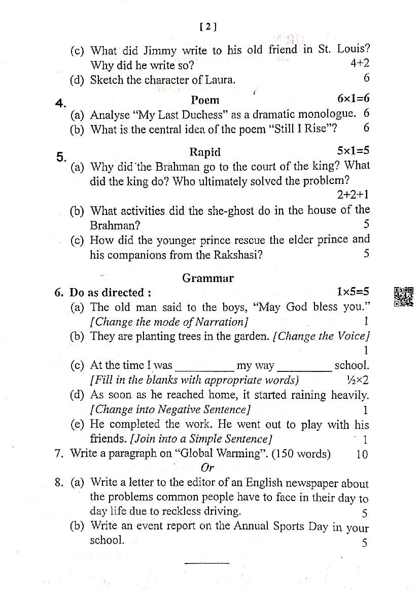 The previous year question paper of West Bengal Board for class 11 (Class 11) English is as follows.