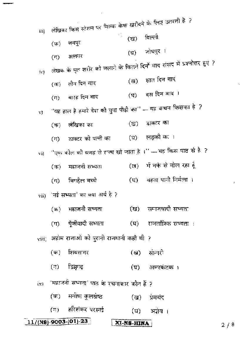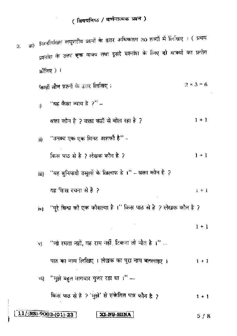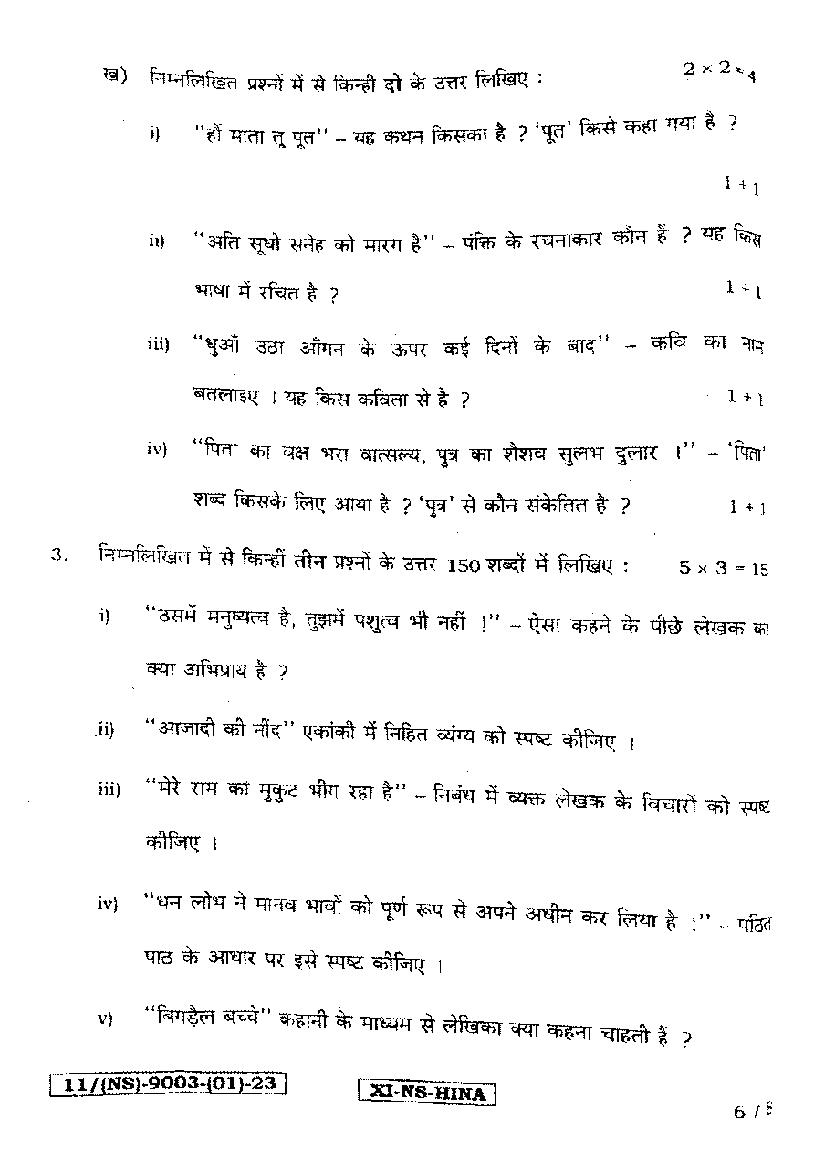 The previous year question paper of West Bengal Board for class 11 (Class 11) Hindi is as follows.