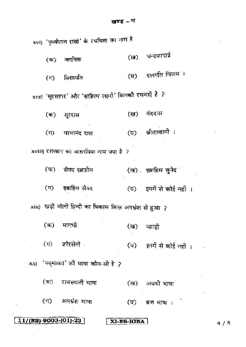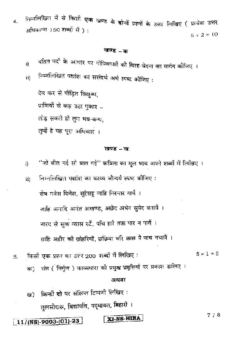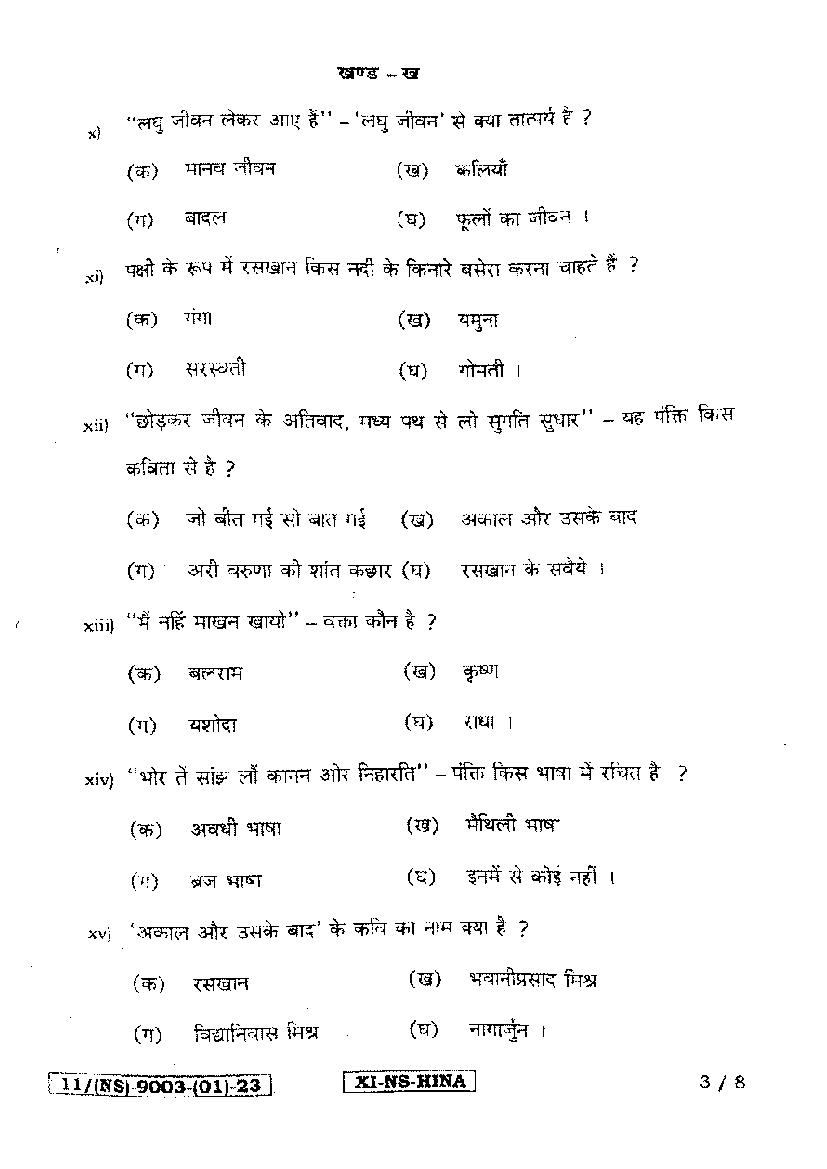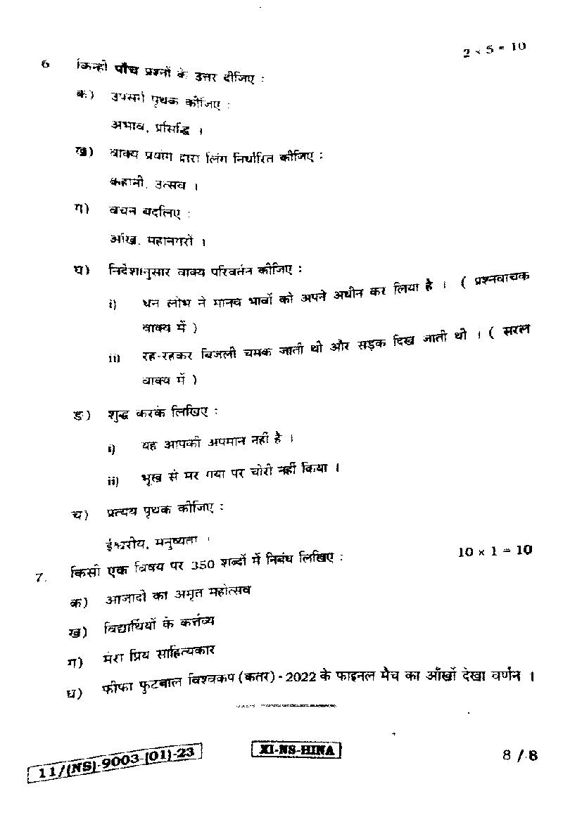 WB Board Class 11 Question Paper 2023 Hindi View Download