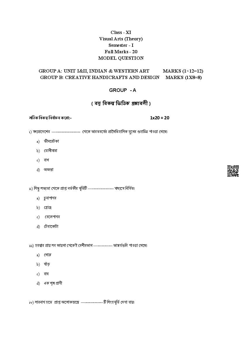 WBCHSE Class 11 Visual Arts Semester 1 Model Question Paper 2025