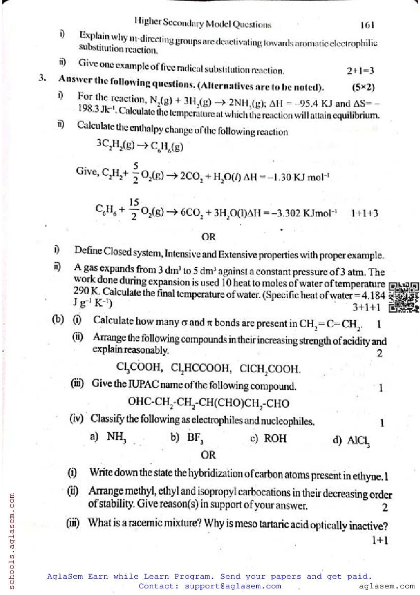 WB Class 11 Semester 2 Model Paper Chemistry View Download