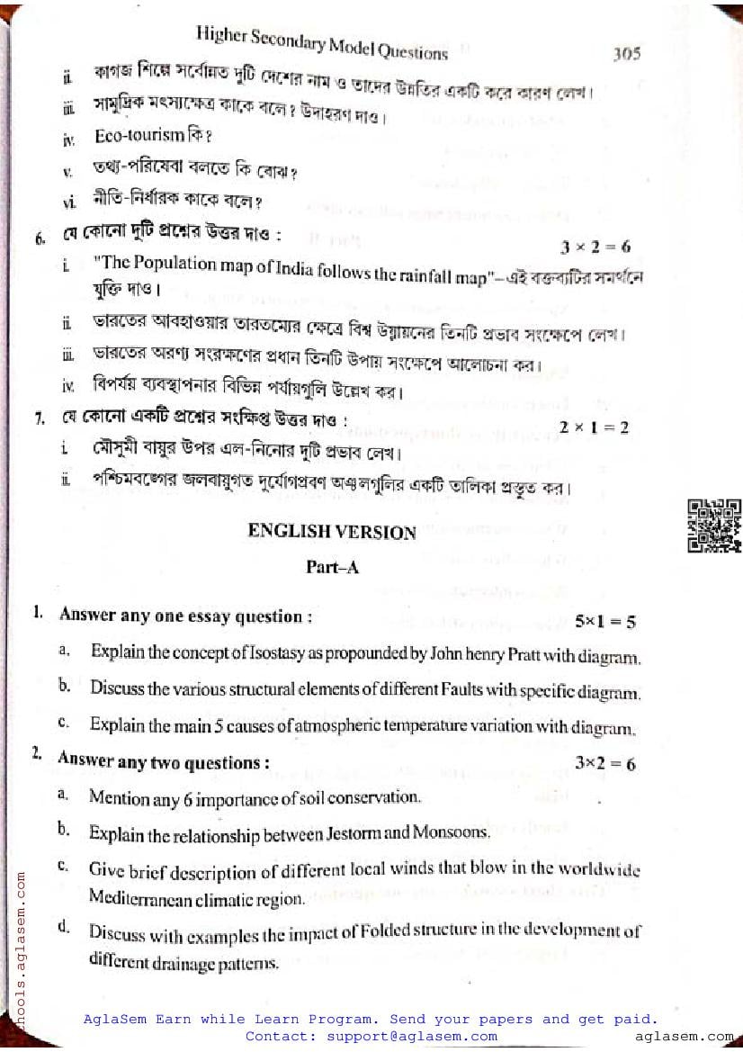 • WB Class 11 Semester 2 Model Paper Geography