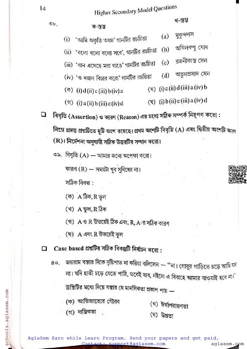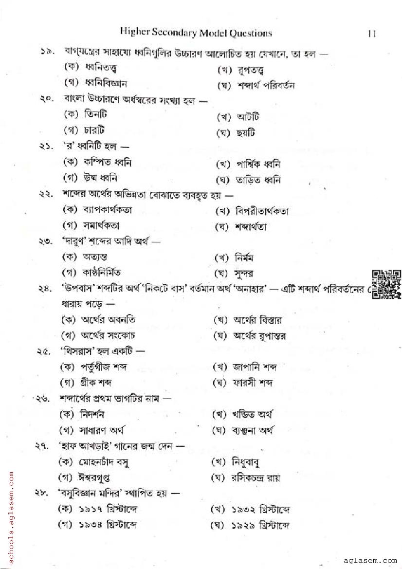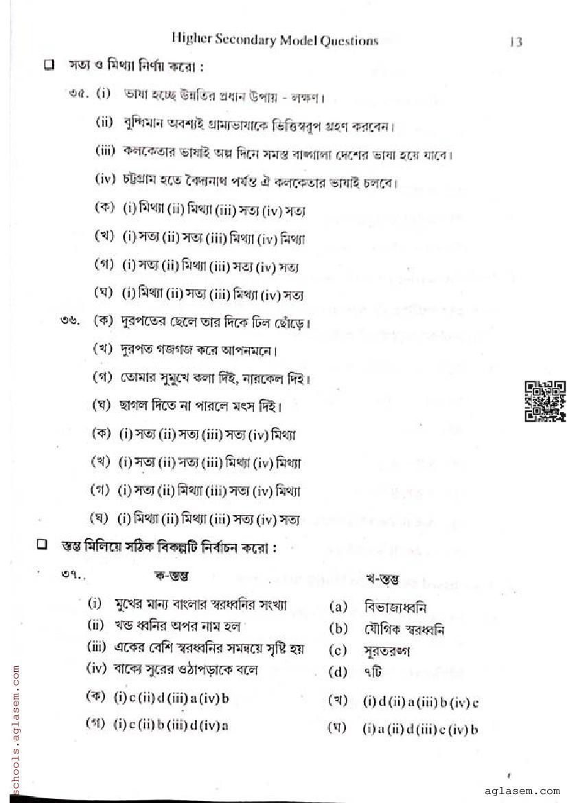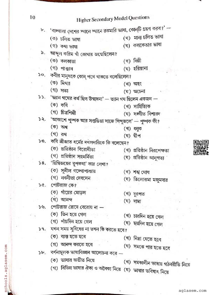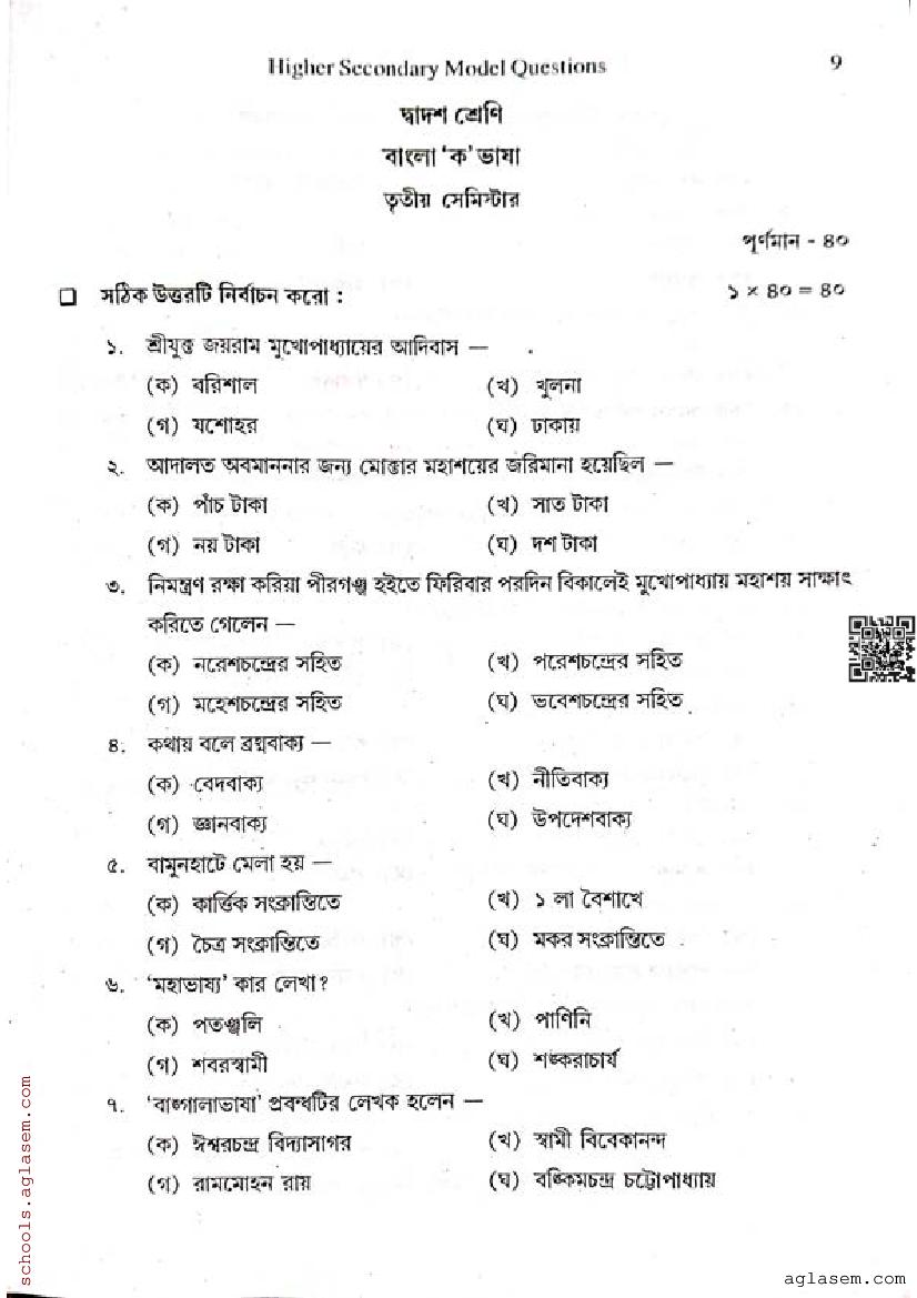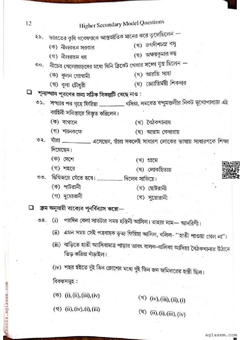 WB Class 12 Semester 3 Model Paper Bengali View Download