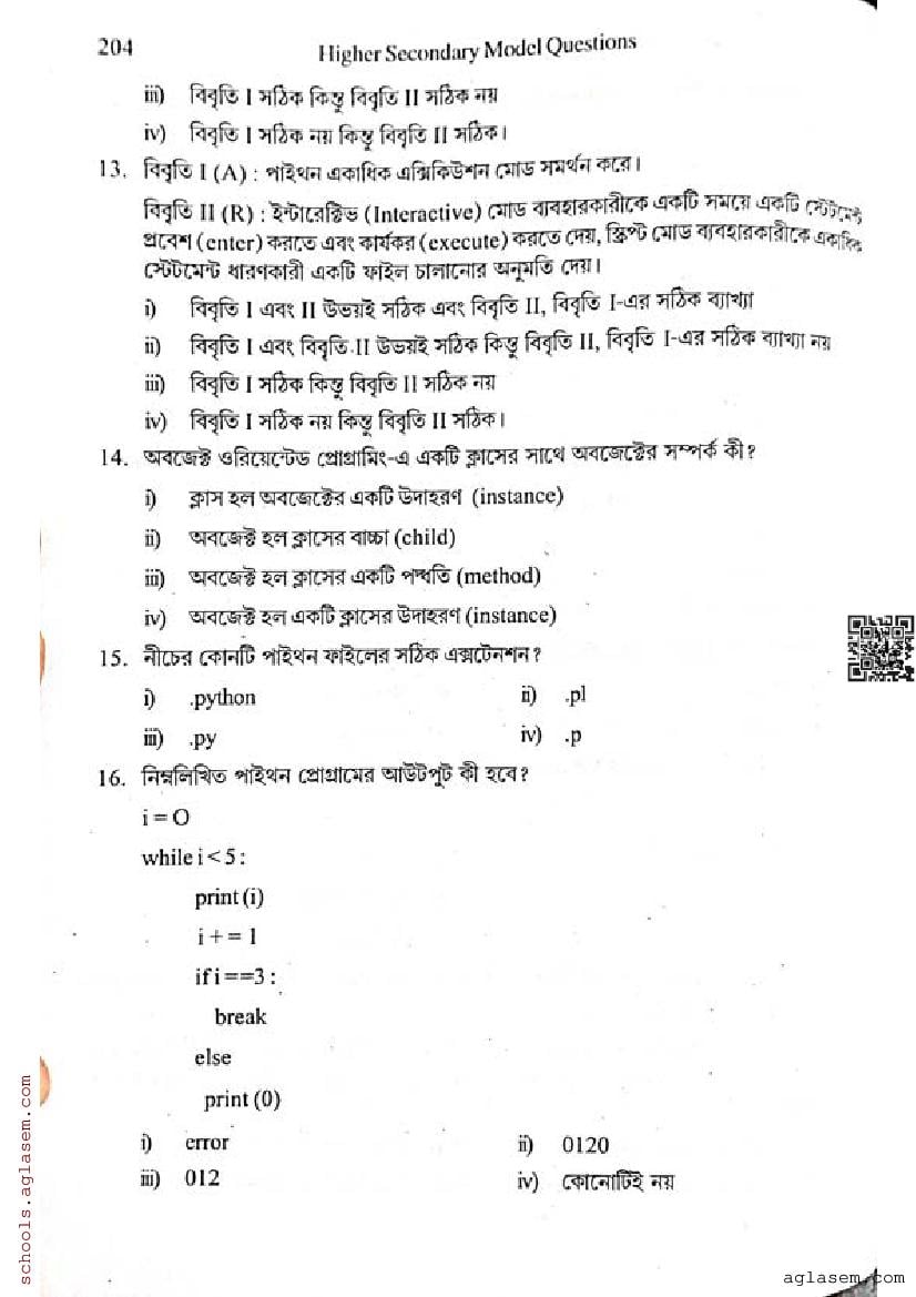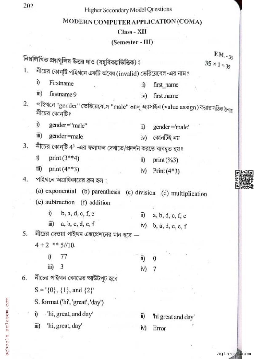 - WB Class 12 Semester 3 Model Paper Computer Application