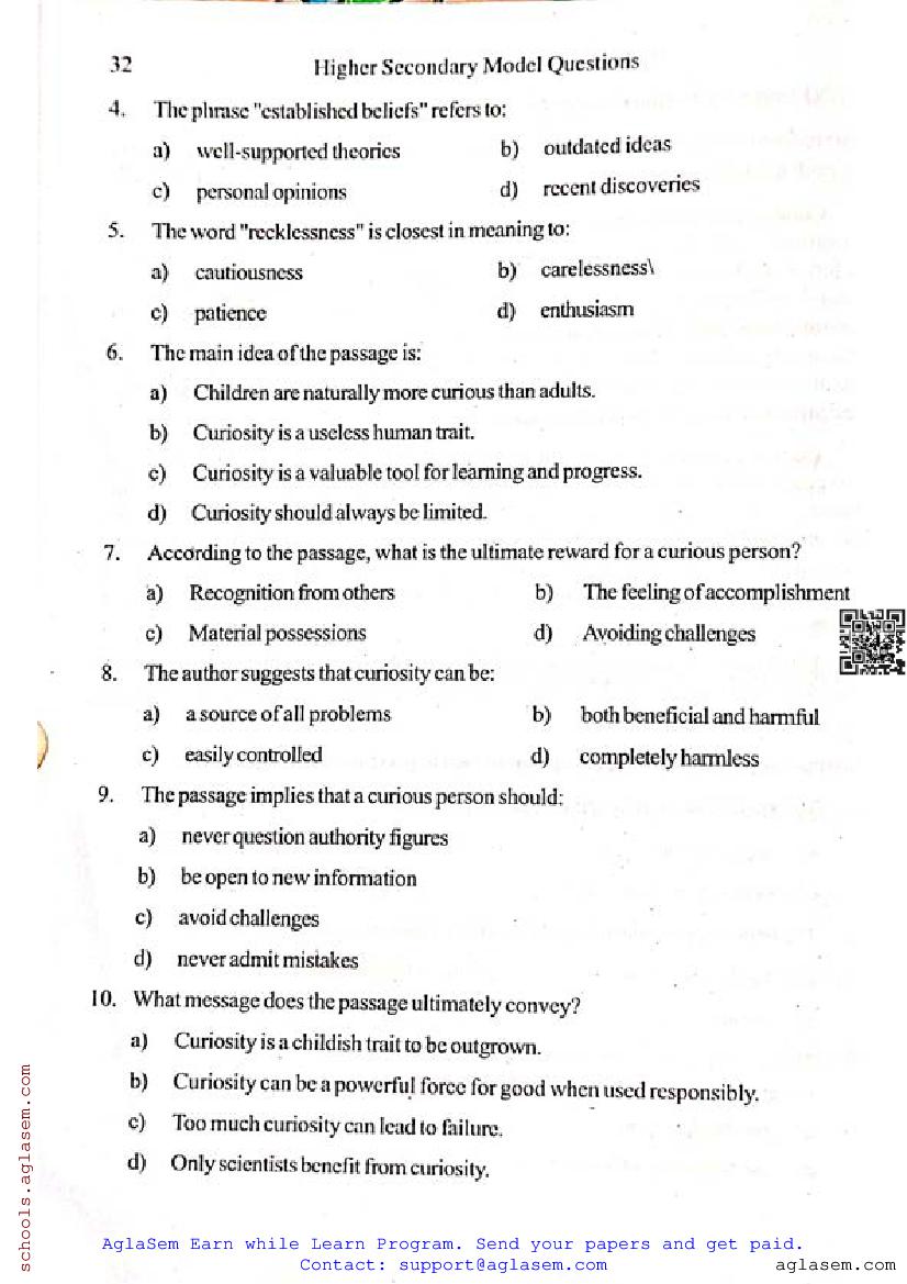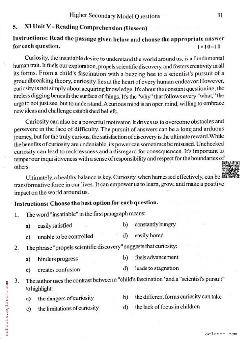 3. Regular Practice: Practice regularly with the Class 12 English 3rd Semester Model Question Paper to build confidence.