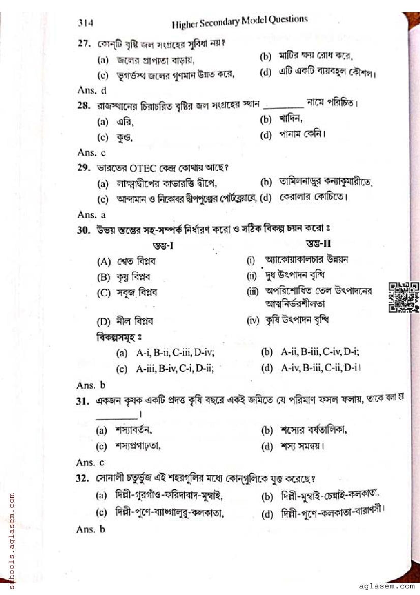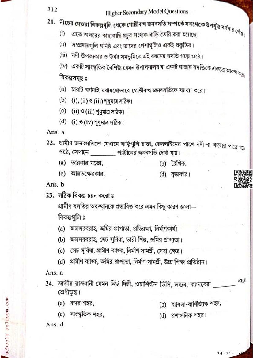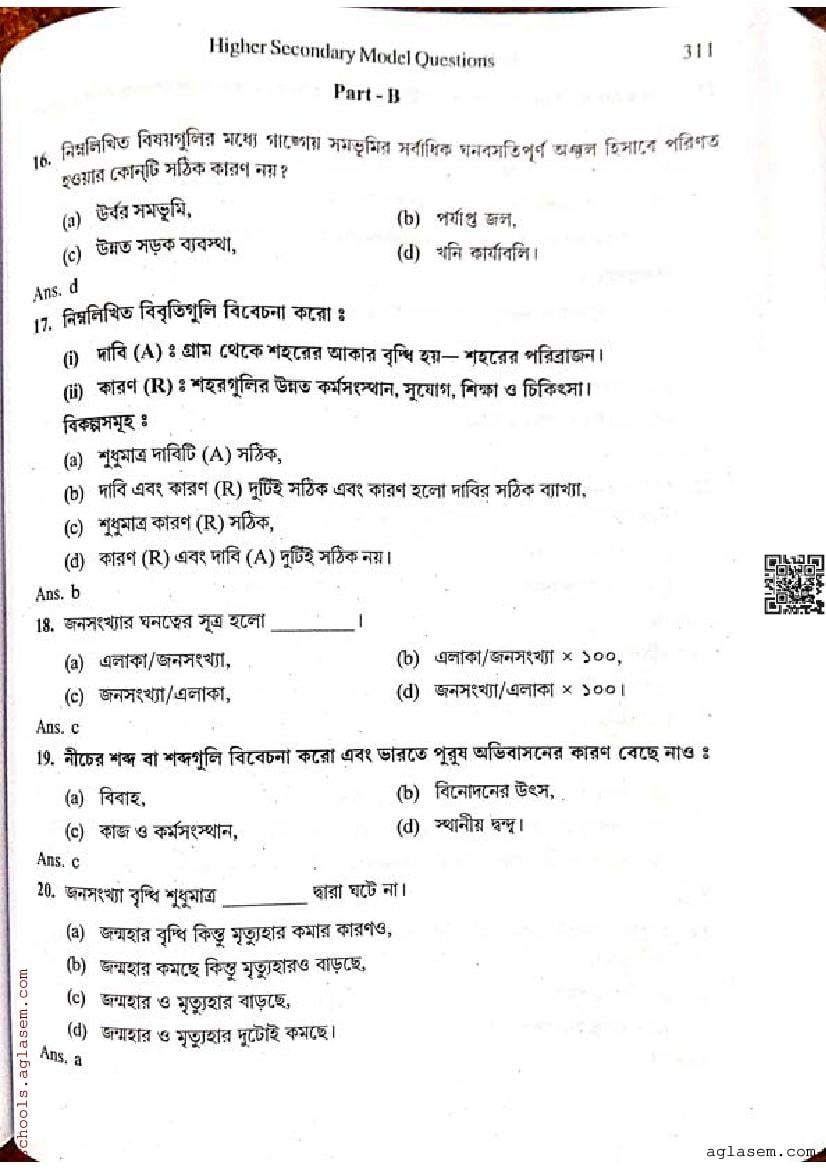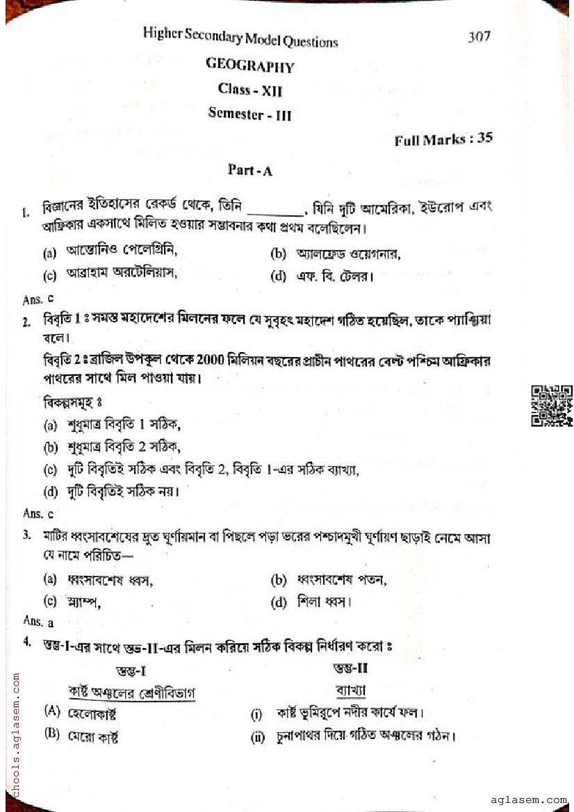 WB Class 12 Semester 3 Model Paper Geography View Download