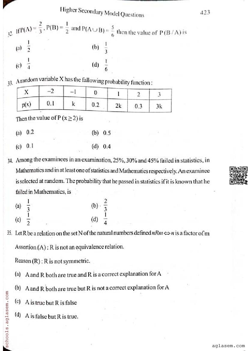 WBCHSE Class 12 Math Semester 3 Model Question Paper 2025