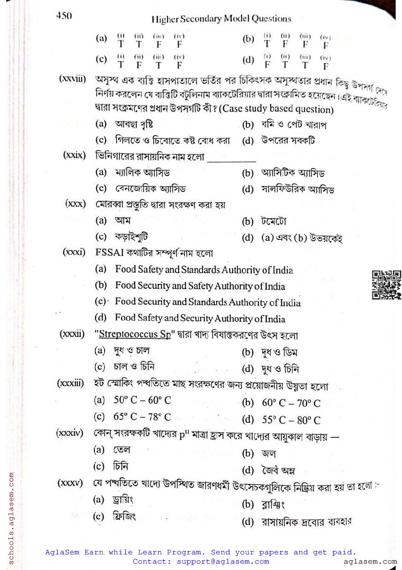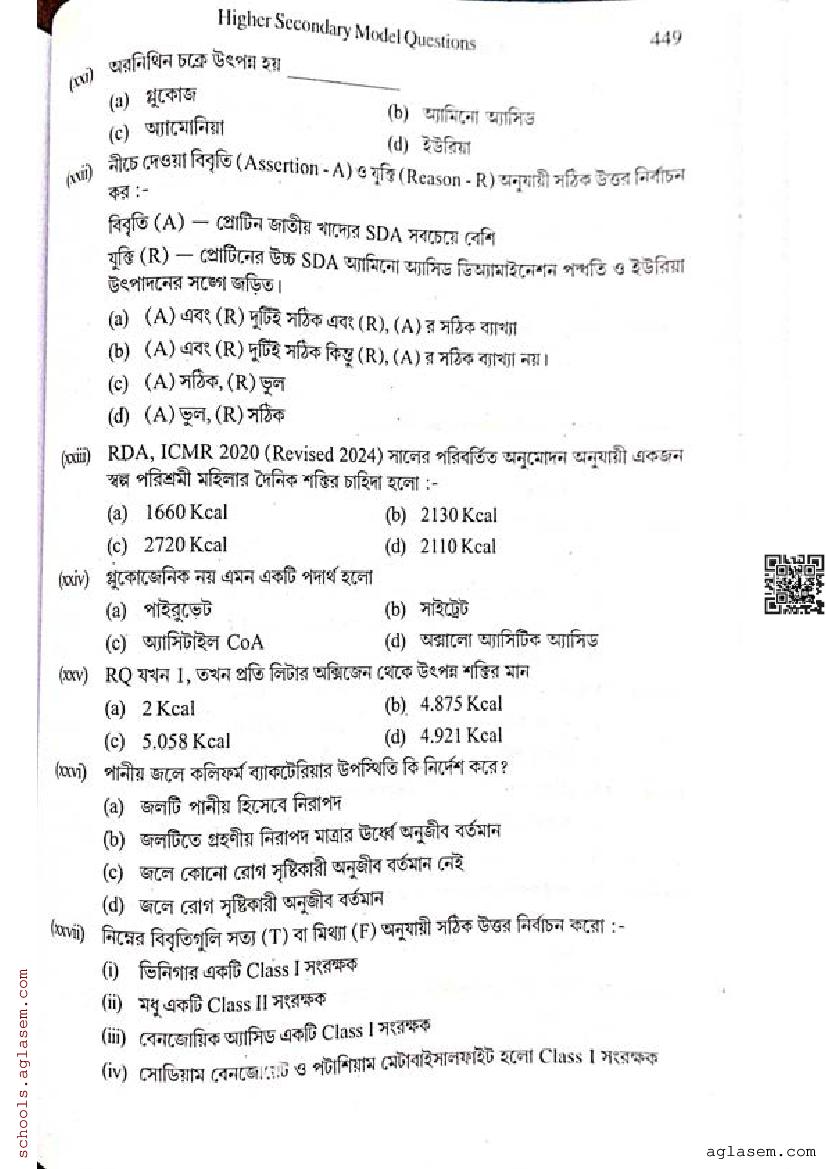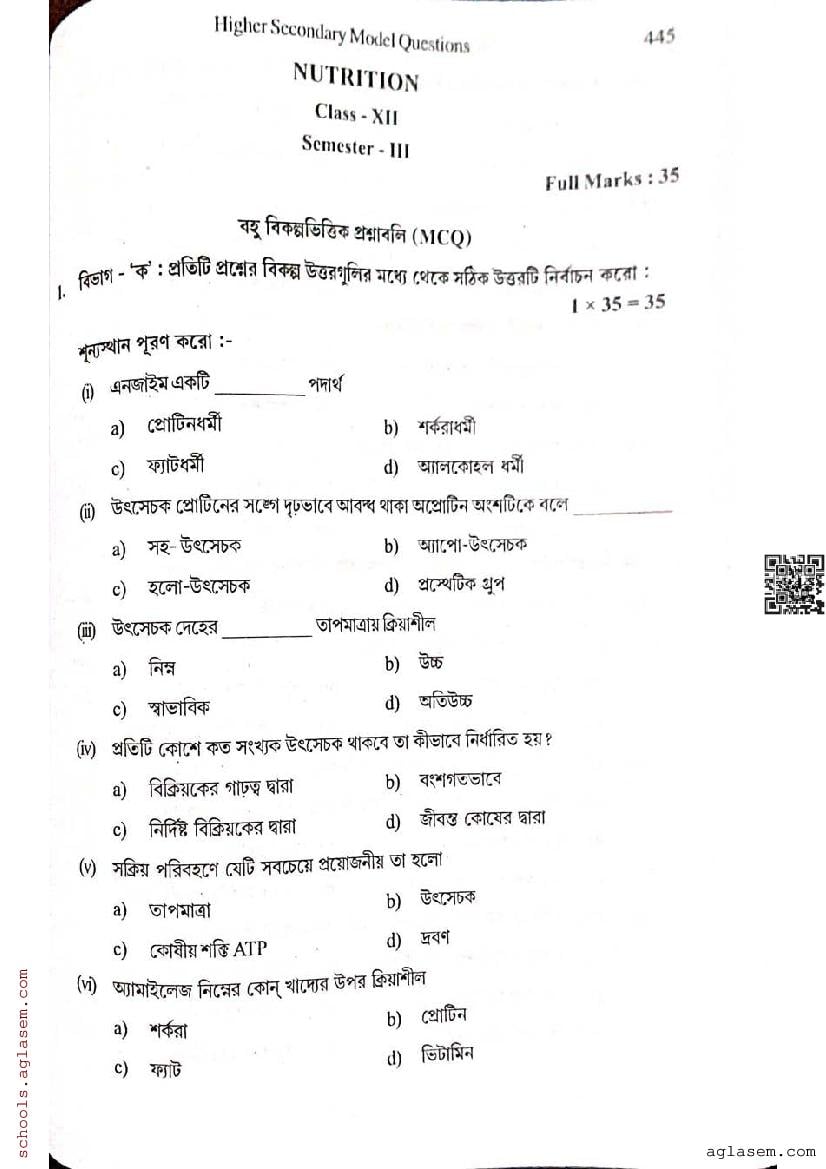 - WB Class 12 Semester 3 Model Paper Nutrition