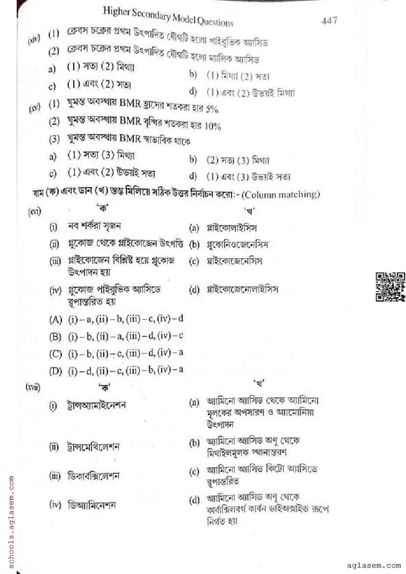 - WBCHSE HS 12th Model Question Paper