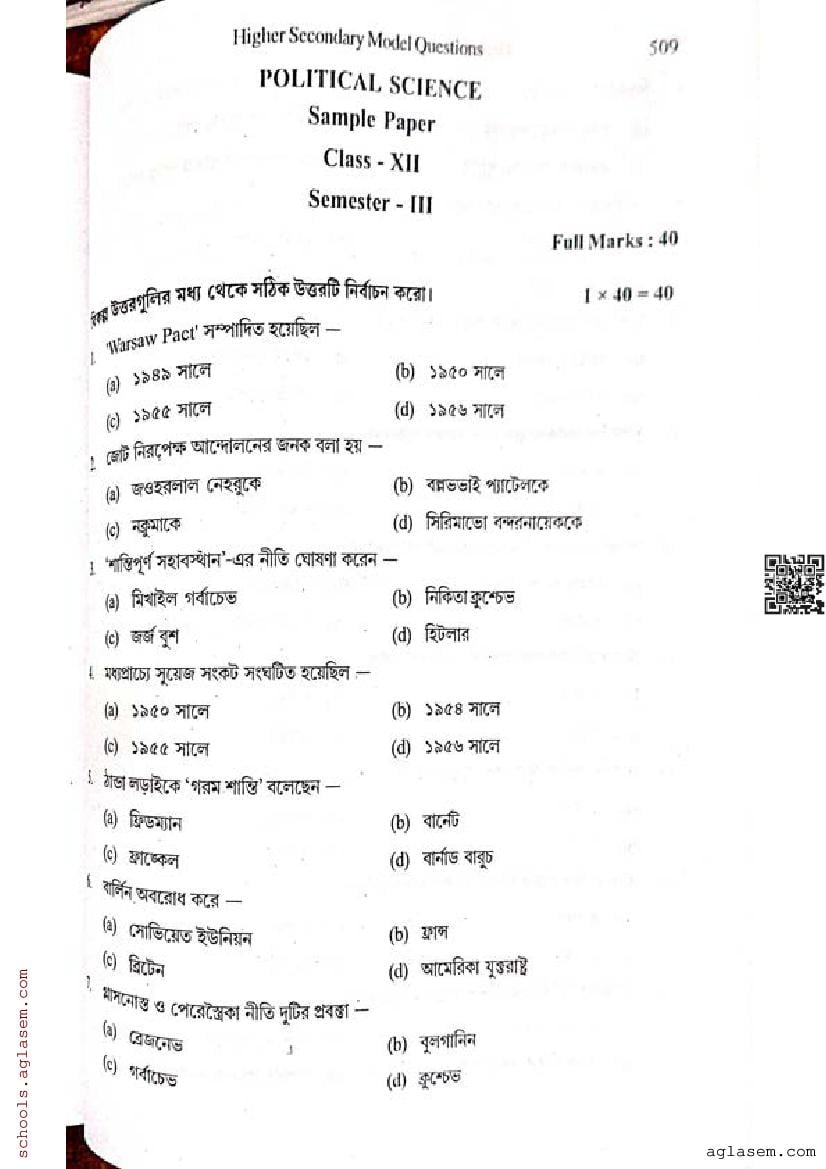 WB Class 12 Semester 3 Model Paper Political Science View Download