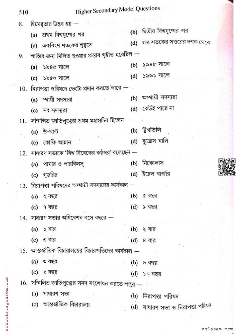 The sample paper of West Bengal Council of Higher Secondary Education for 12 Political Science for the 3rd semester is as follows.