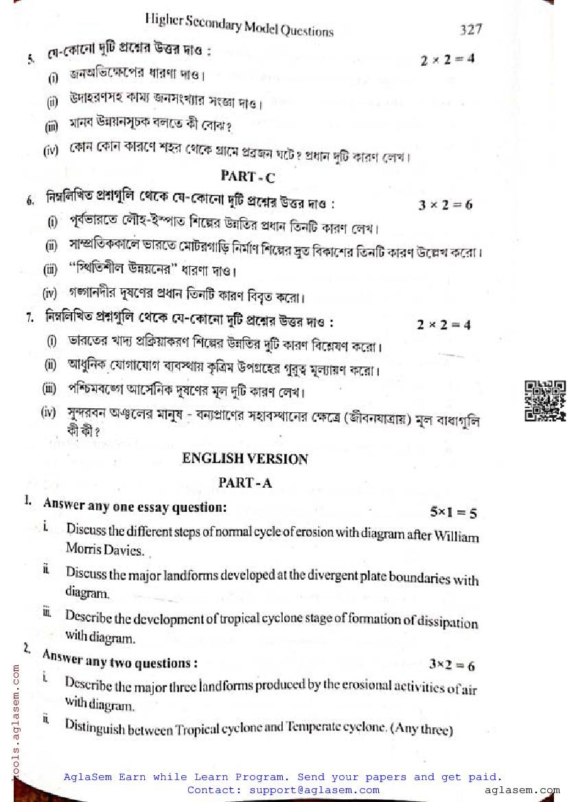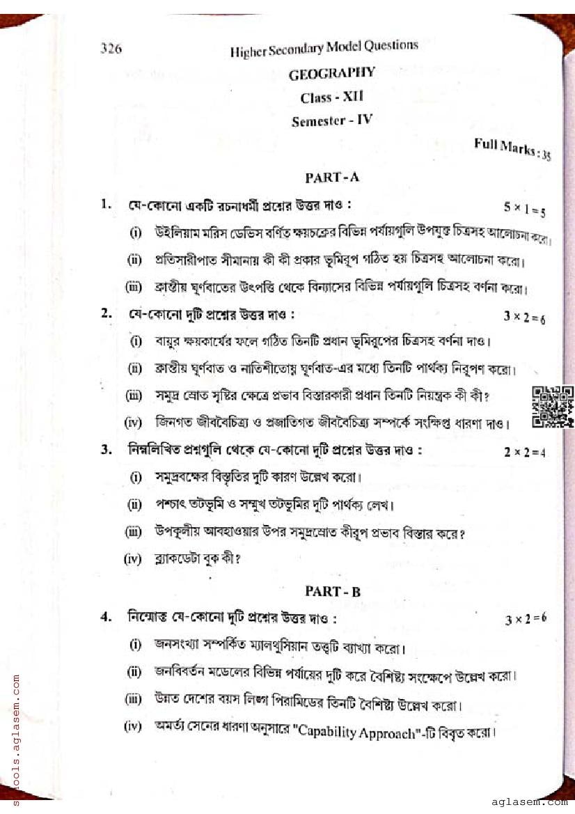 - WB Class 12 Semester 4 Model Paper Geography
