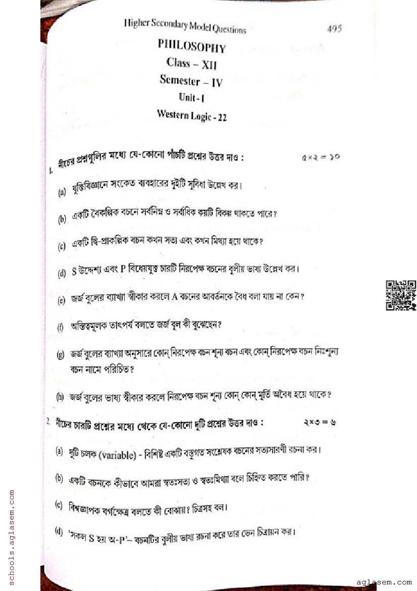 - WB Class 12 Semester 4 Model Paper Philosophy