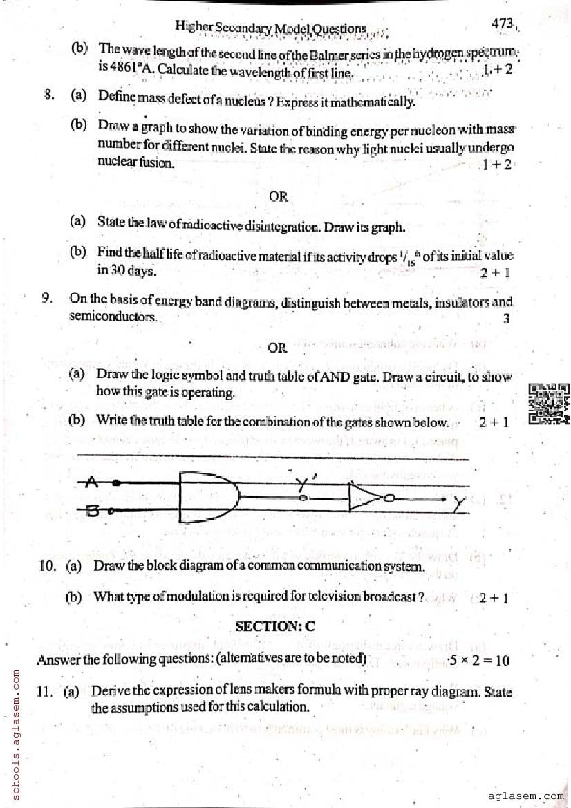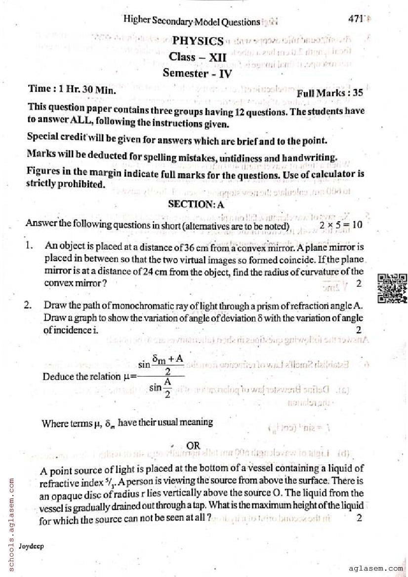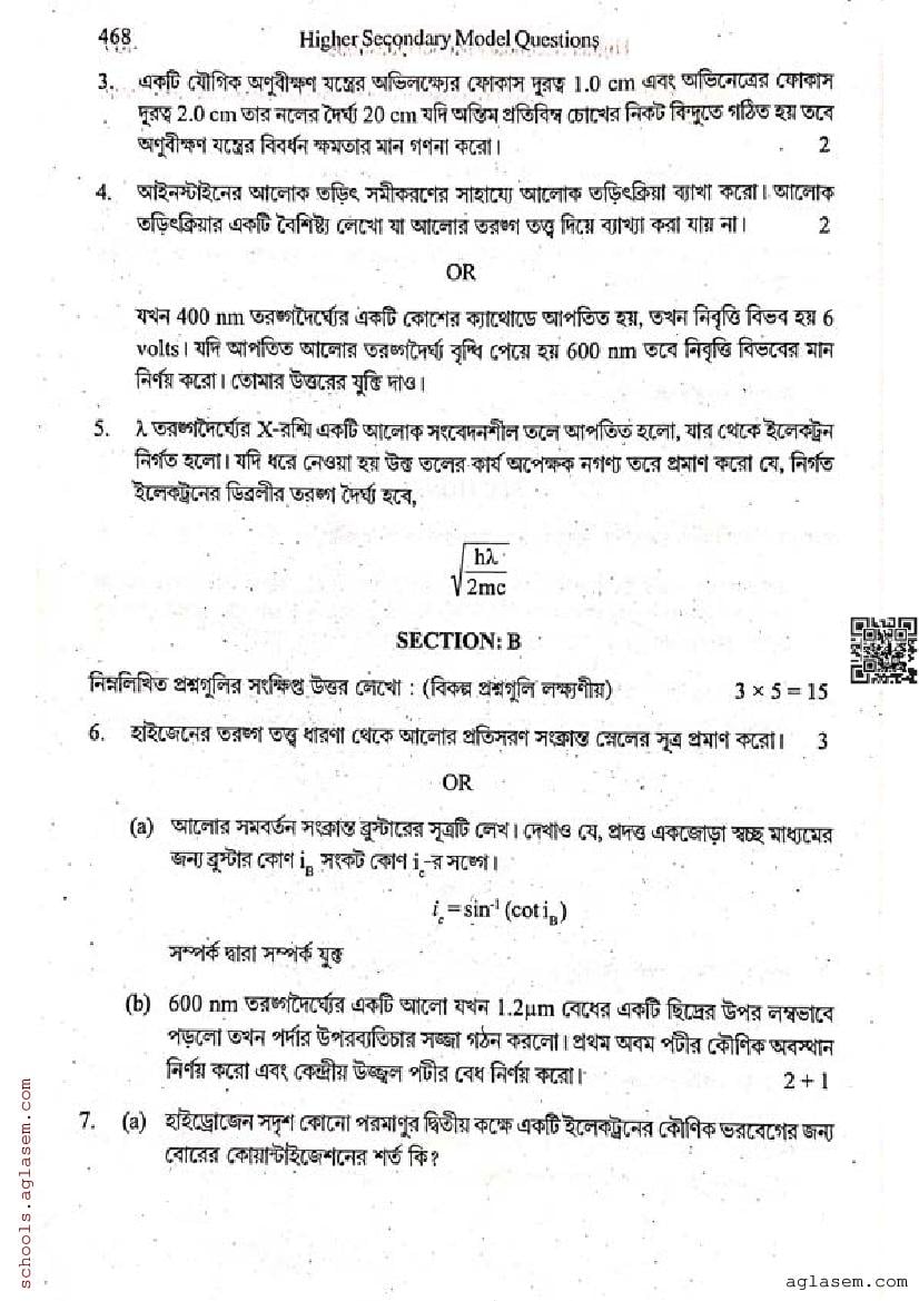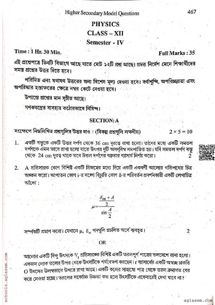 WB Class 12 Semester 4 Model Paper Physics View Download