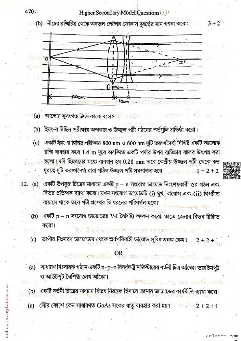 WBCHSE Class 12 Physics Semester 4 Model Question Paper 2026
