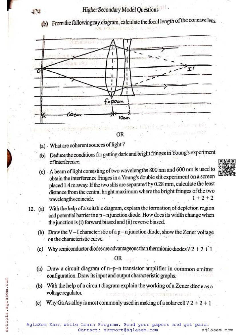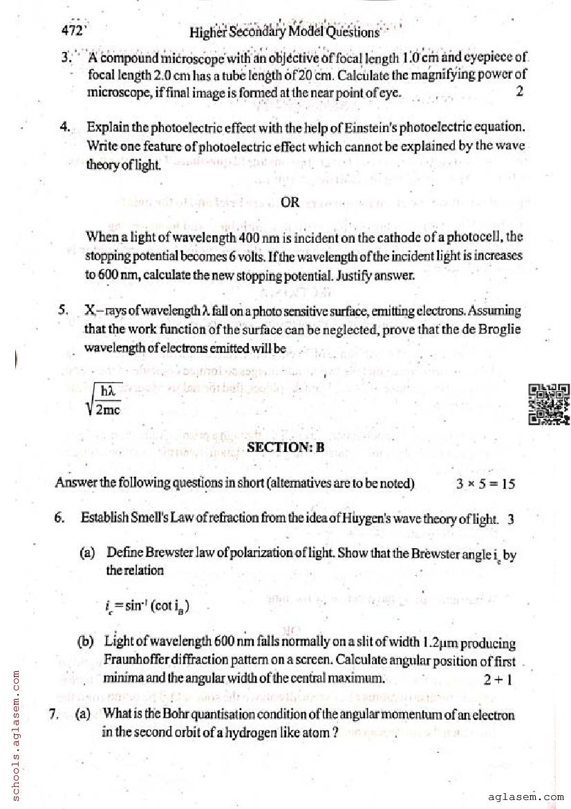 The sample paper of West Bengal Council of Higher Secondary Education for 12 Physics for the 4th semester is as follows.
