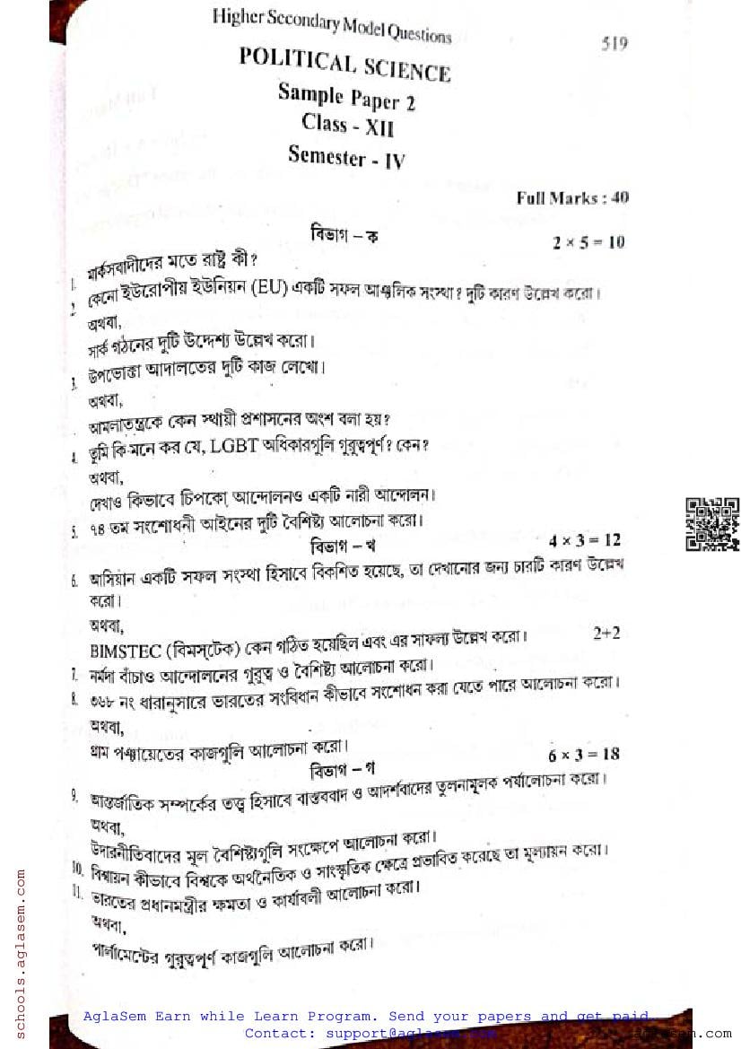 - WB Class 12 Semester 4 Model Paper Political Science