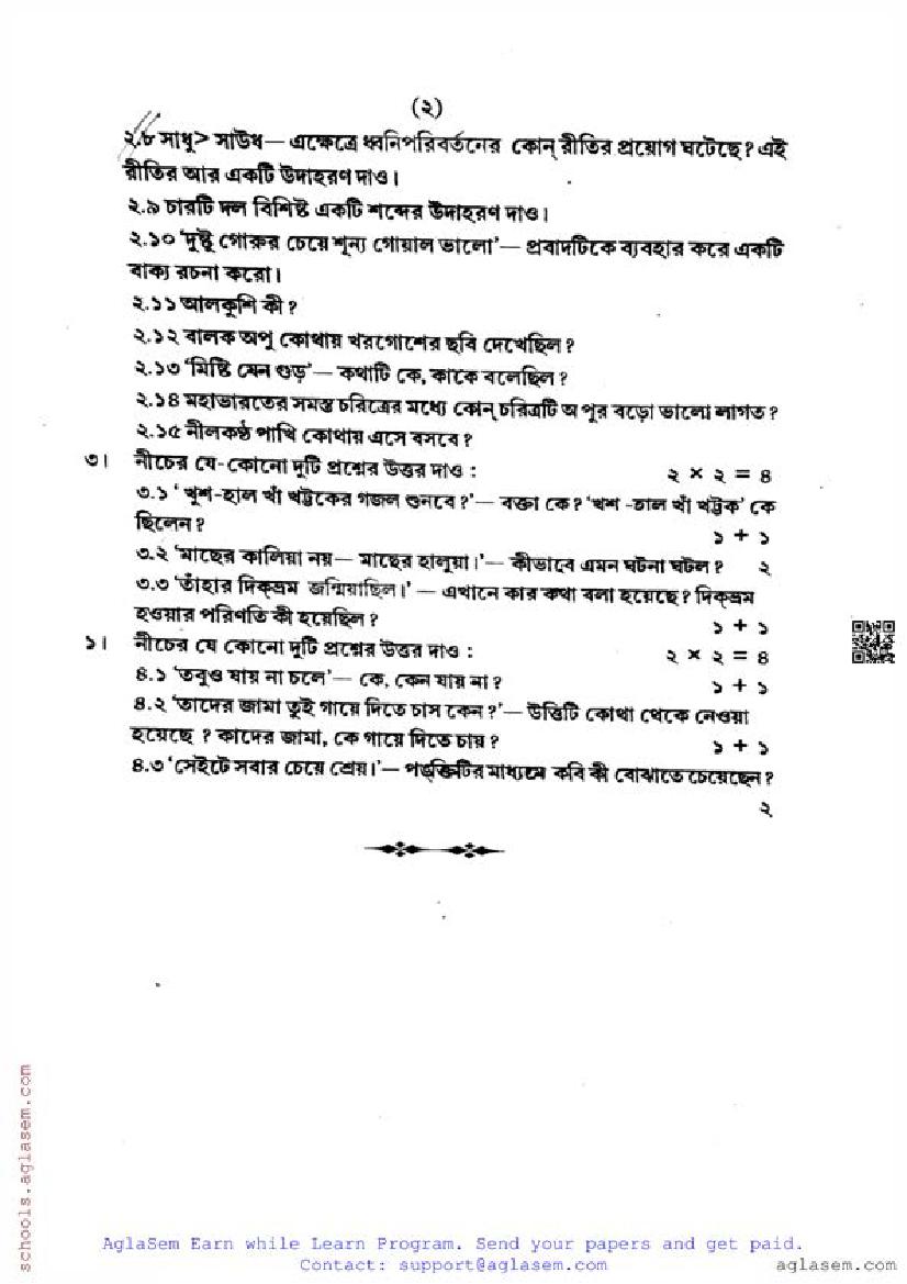 The previous year question paper of West Bengal Board for class 8 (Class 8) Bengali is as follows.