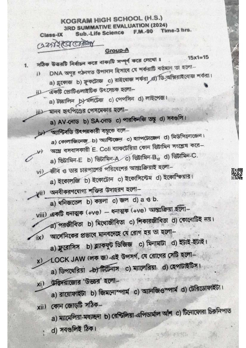 If you have any queries on WB Class 9 Life Science Question Paper 2025, then please ask in comments below.