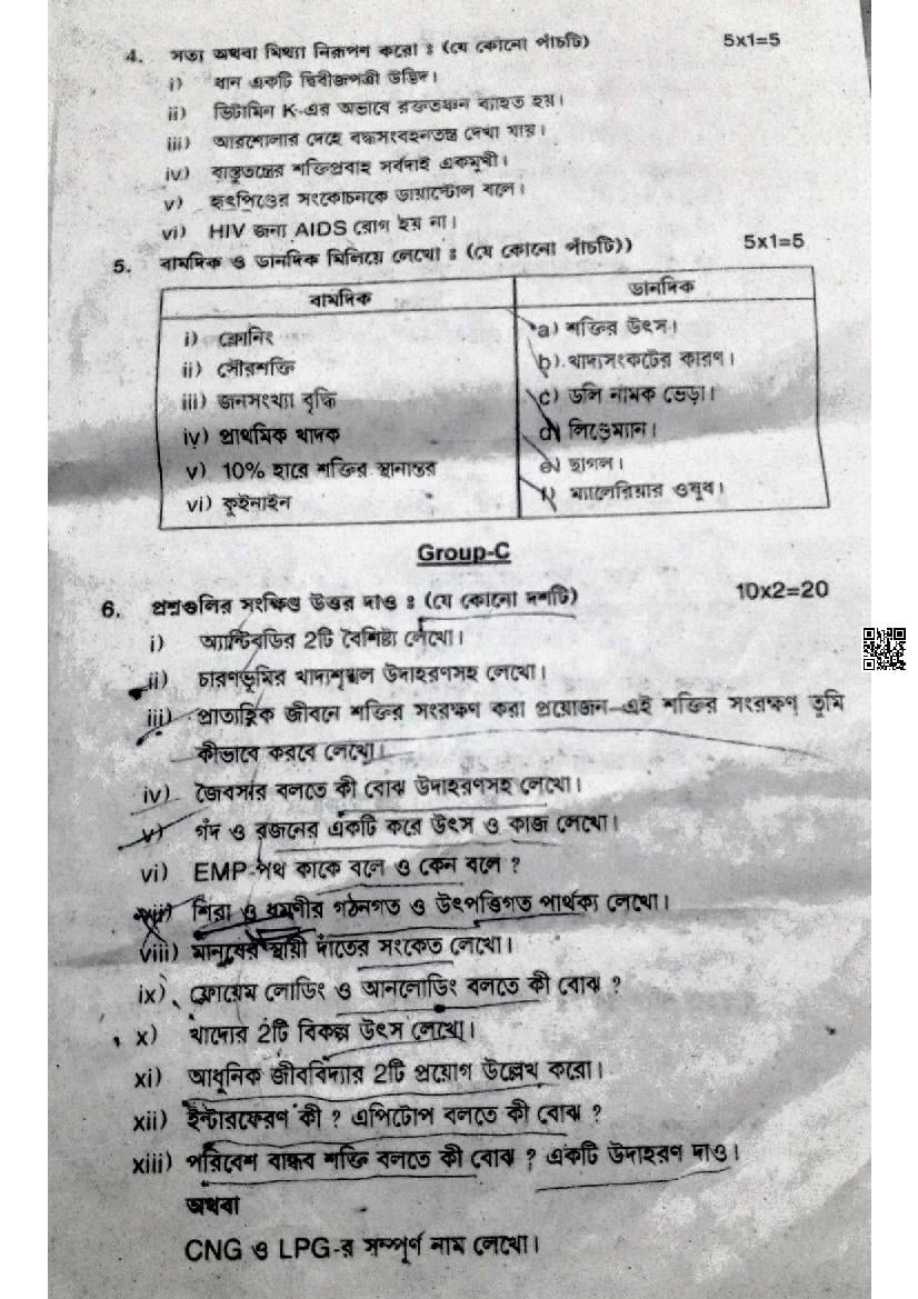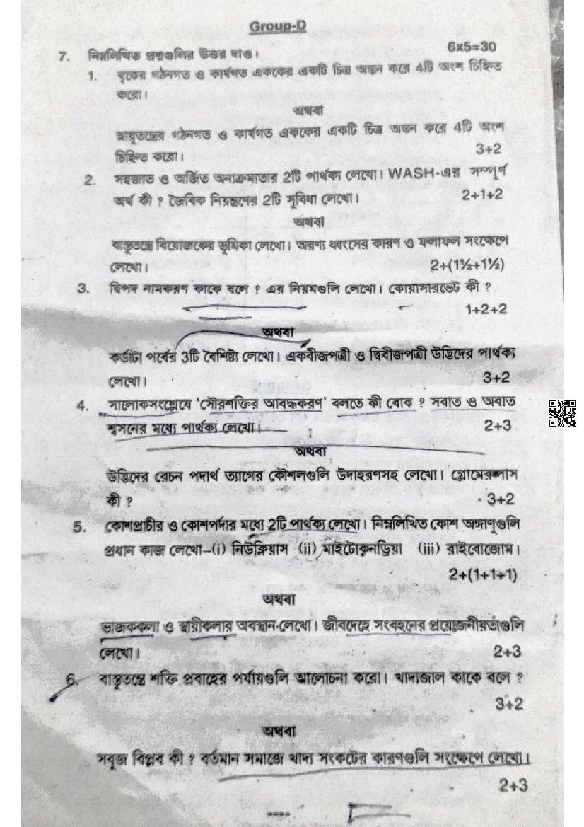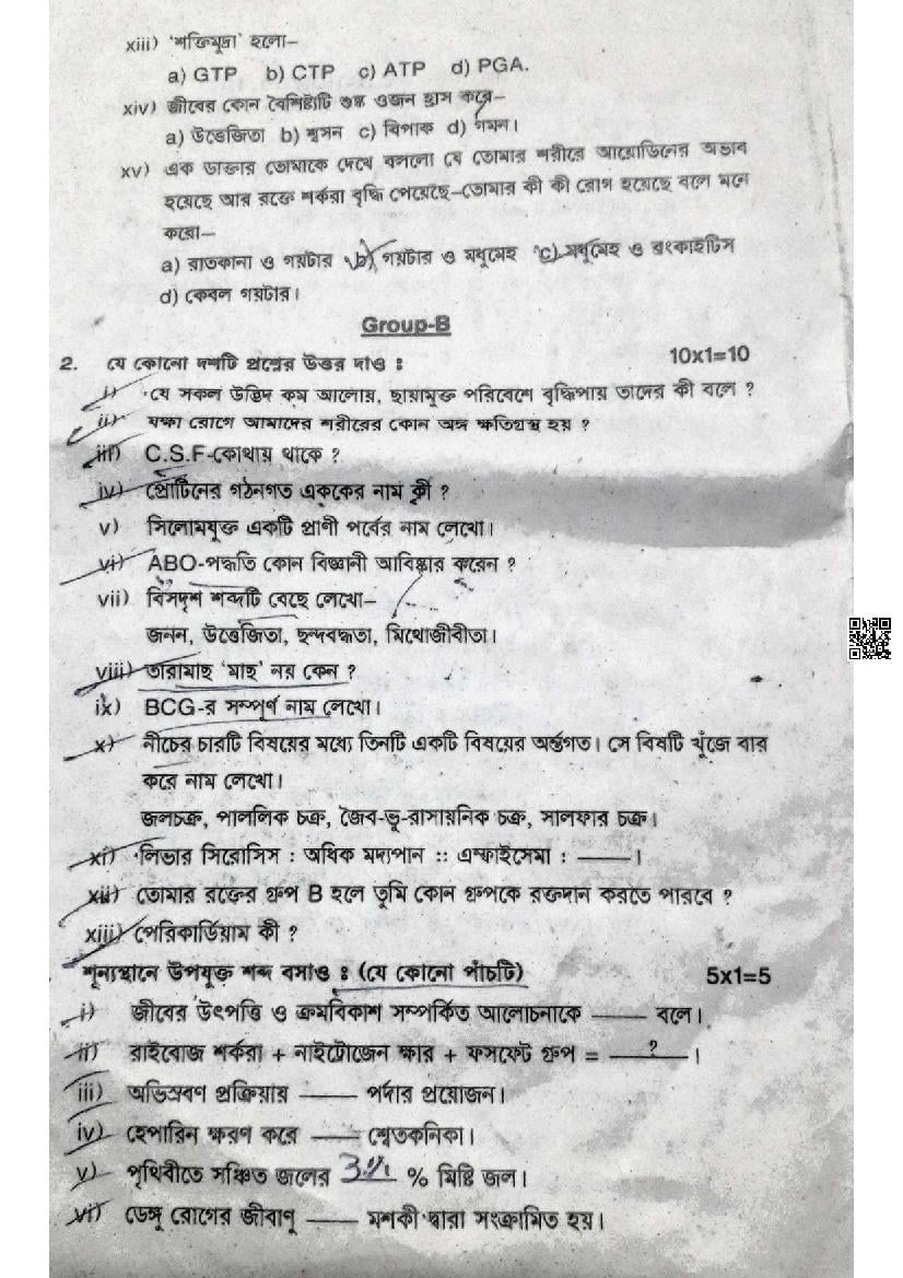 The previous year question paper of West Bengal Board for class 9 (Class 9) Life Science is as follows.
