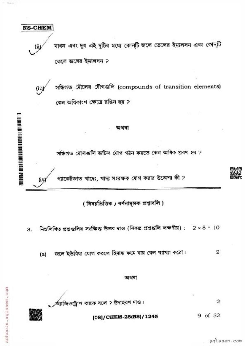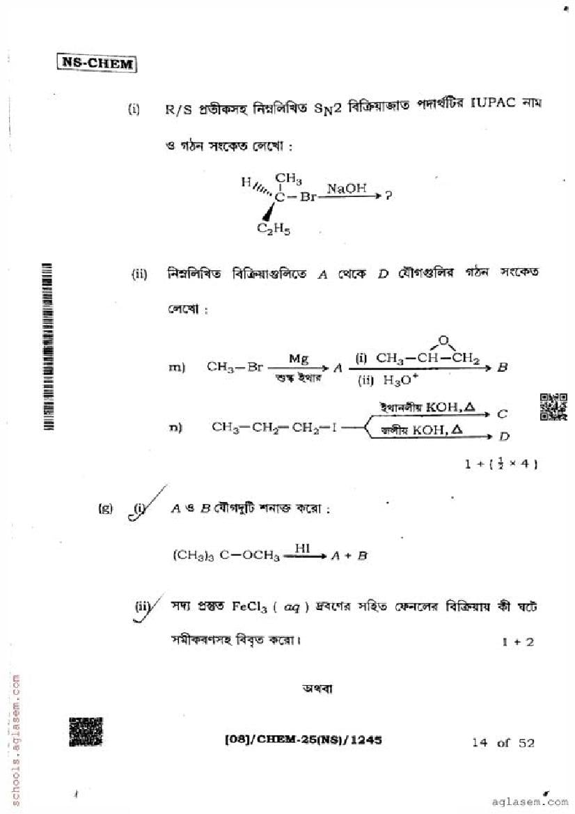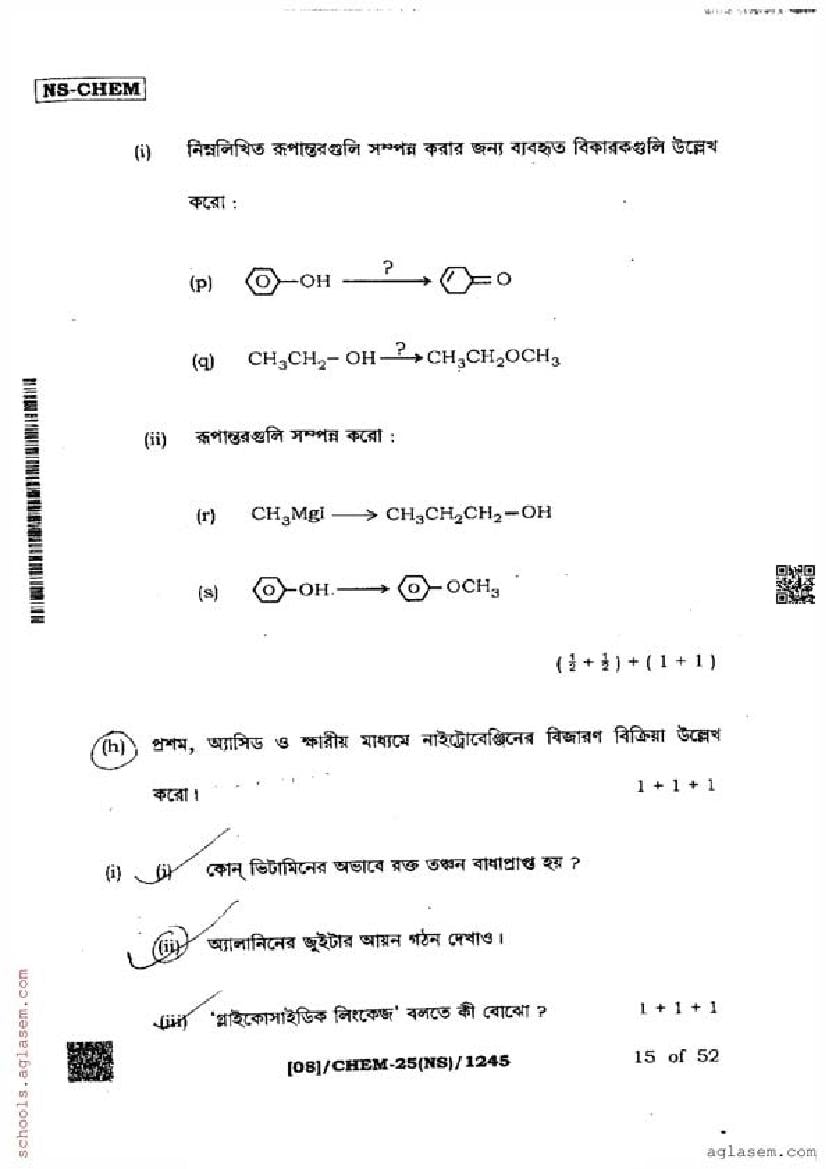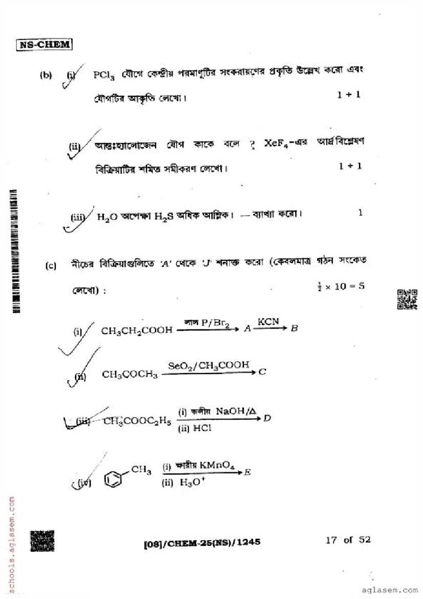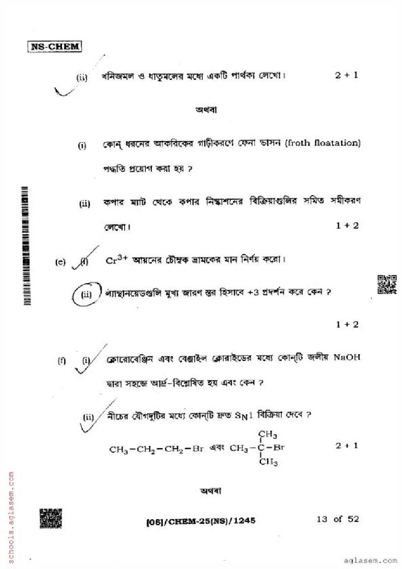 WB HS Chemistry Question Paper 2025 is an important study material. You can now download WBCHSE Class 12 Question Paper of Chemistry PDF from here on aglasem. This HS question paper is of Chemistry subject and contains actual questions asked in past year board exams. Therefore by solving them you can enhance your preparation for West Bengal Board exam for 12th standard Chemistry exam and aim to score 100% marks in it.
