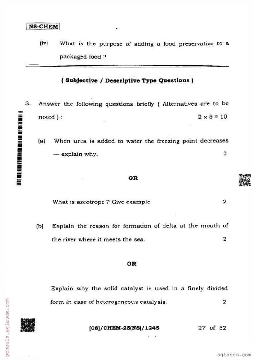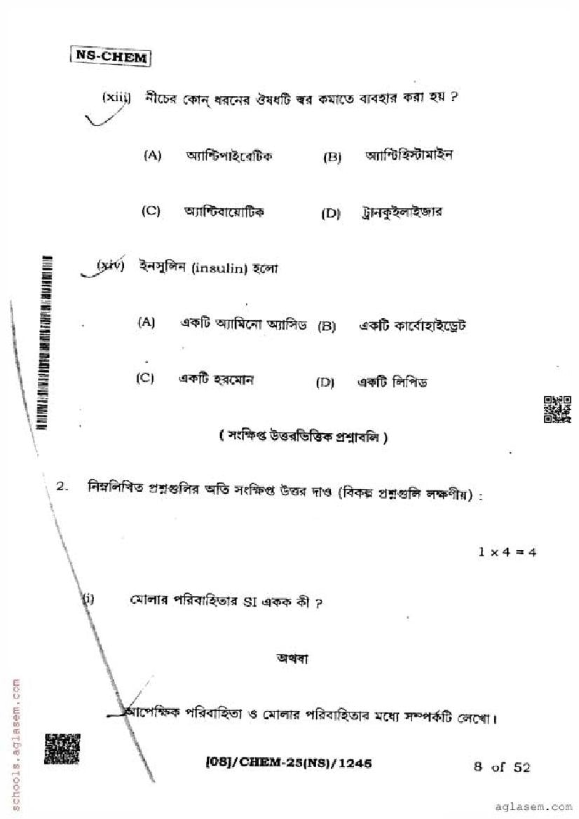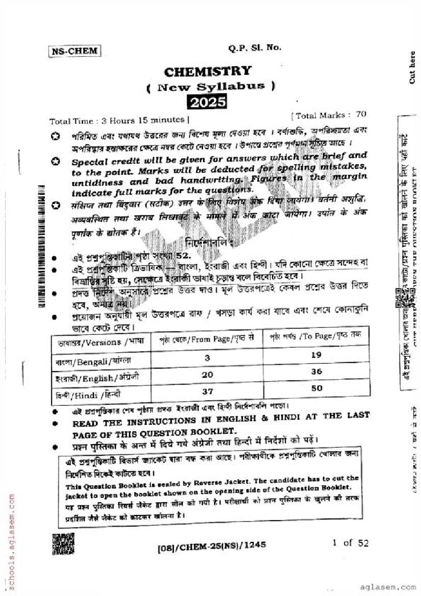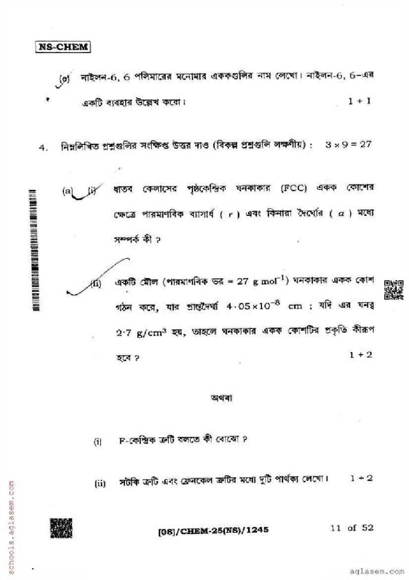 WB HS Chemistry Question Paper 2025 is an important study material. You can now download WBCHSE Class 12 Question Paper of Chemistry PDF from here on aglasem. This HS question paper is of Chemistry subject and contains actual questions asked in past year board exams. Therefore by solving them you can enhance your preparation for West Bengal Board exam for 12th standard Chemistry exam and aim to score 100% marks in it.
