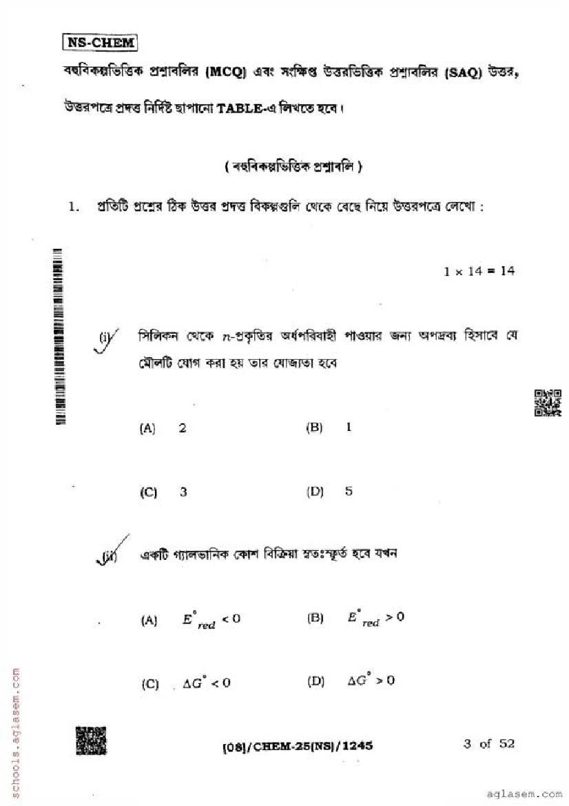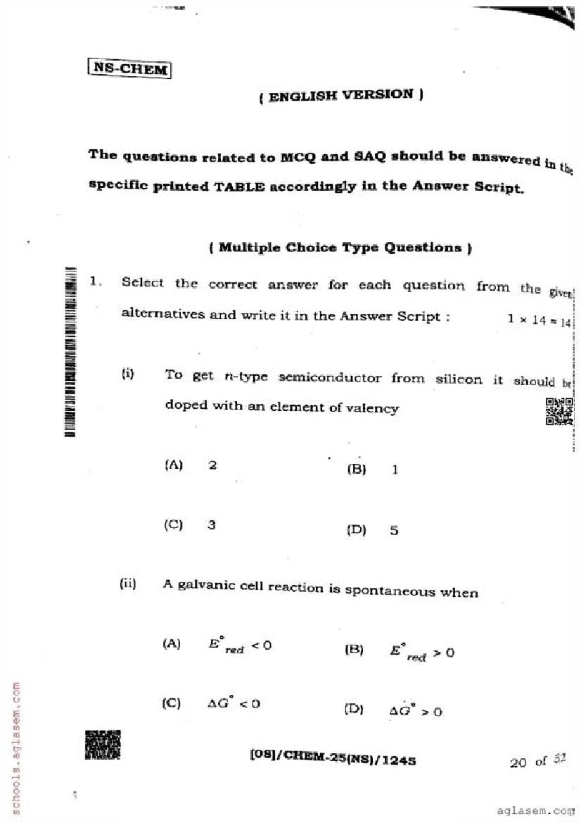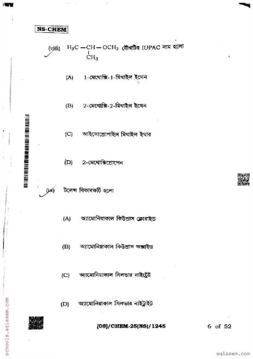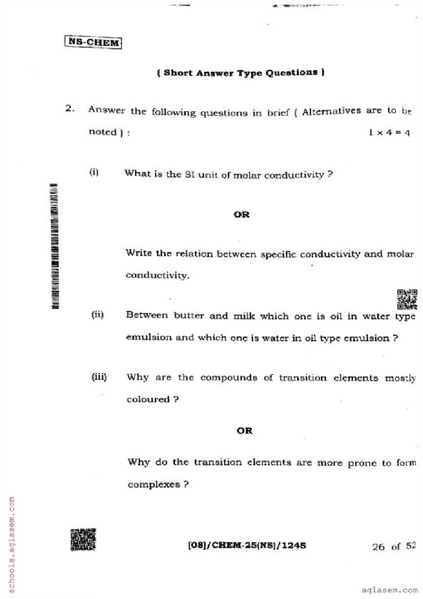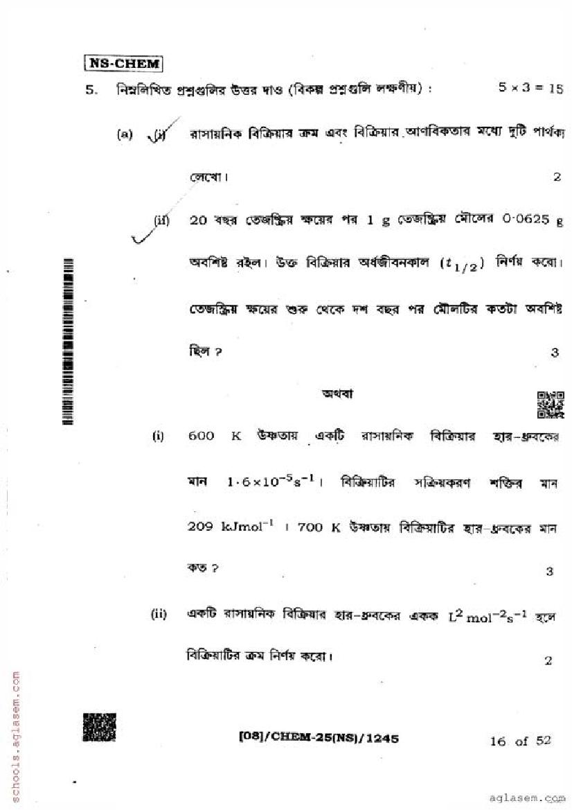 WB HS Chemistry Question Paper 2025 is an important study material. You can now download WBCHSE Class 12 Question Paper of Chemistry PDF from here on aglasem. This HS question paper is of Chemistry subject and contains actual questions asked in past year board exams. Therefore by solving them you can enhance your preparation for West Bengal Board exam for 12th standard Chemistry exam and aim to score 100% marks in it.