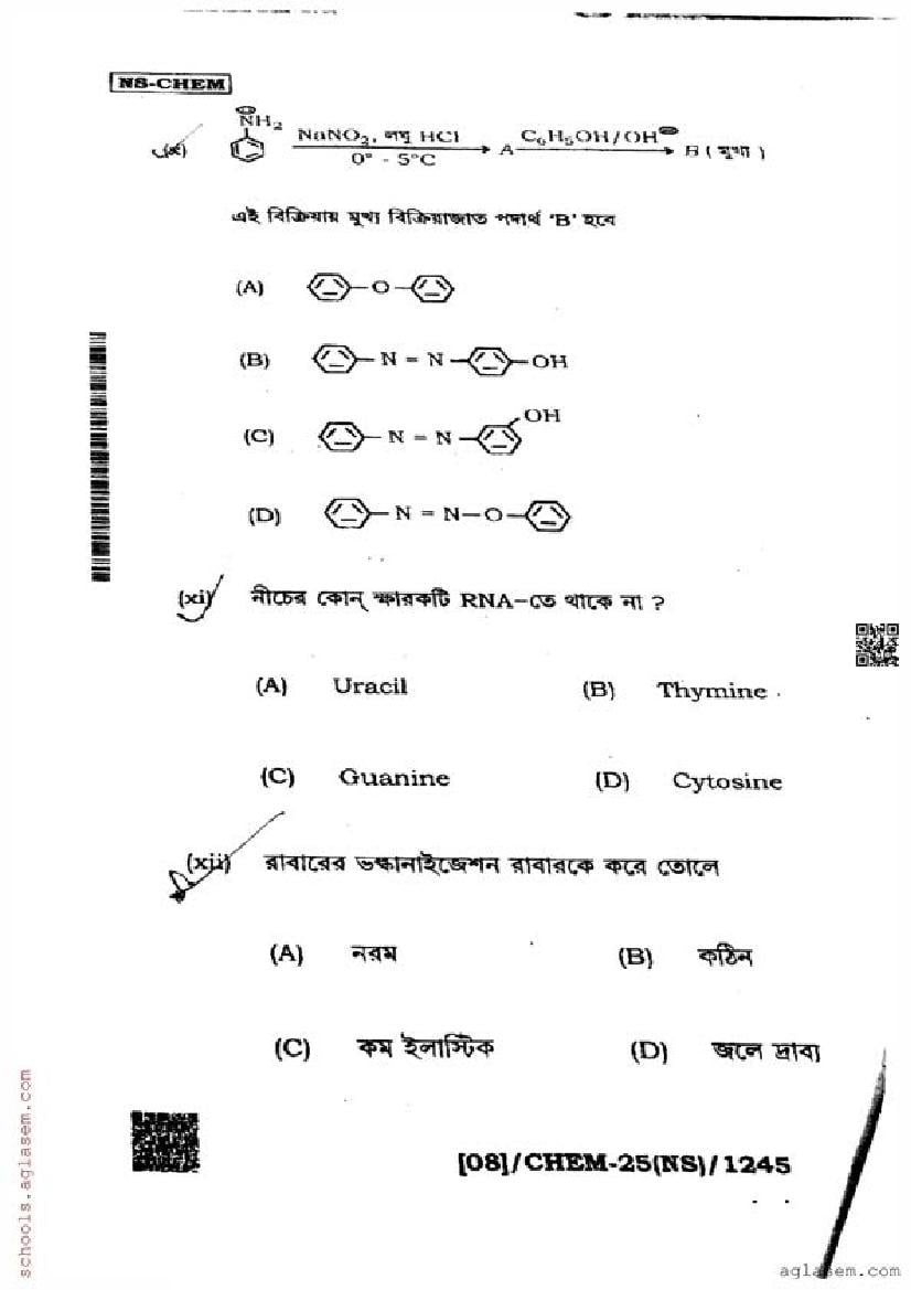 WB Board Class 12 Question Paper 2025 Chemistry View Download
