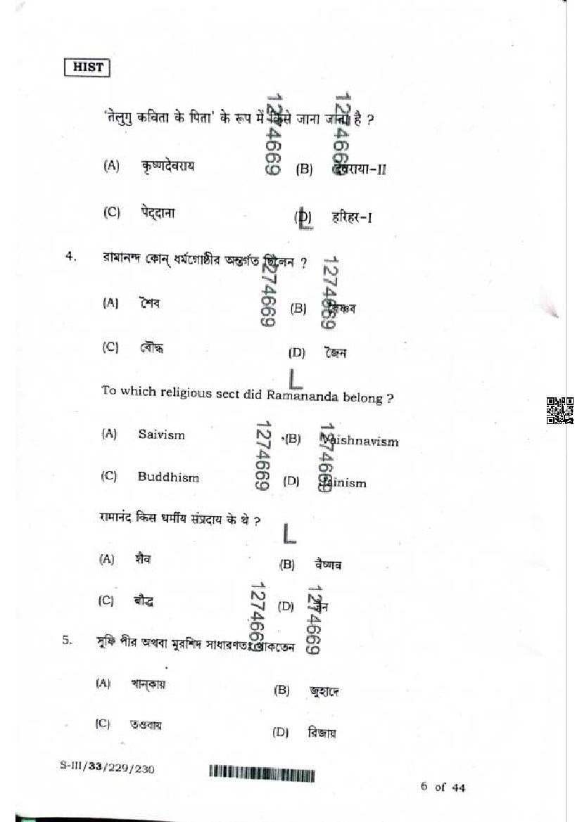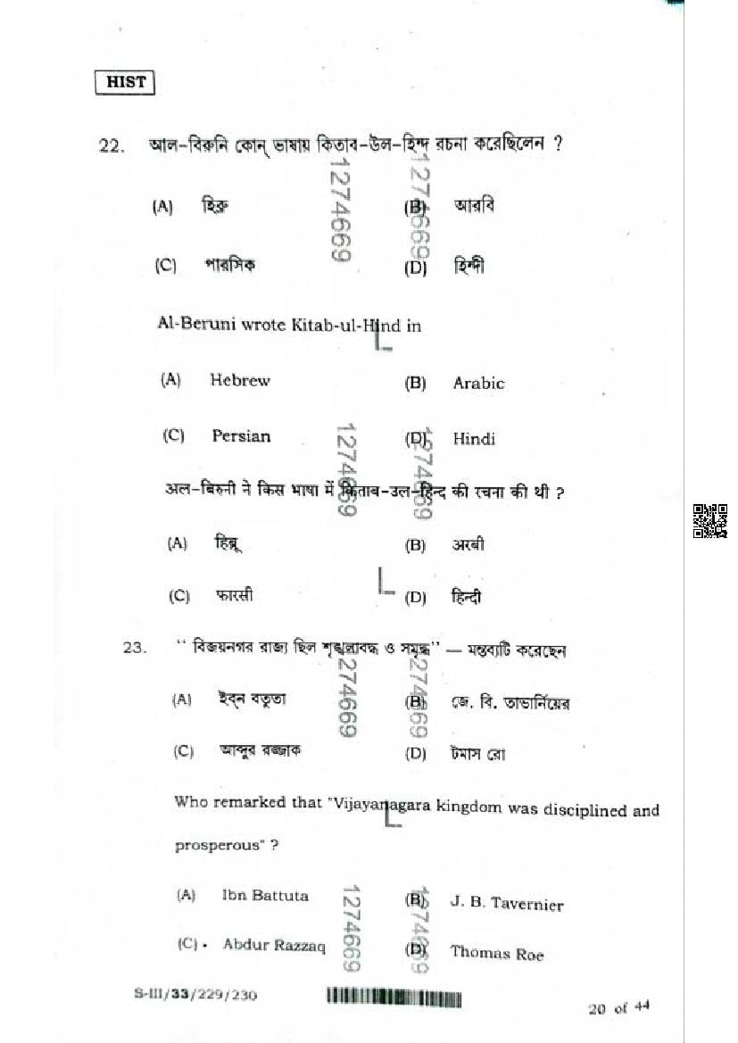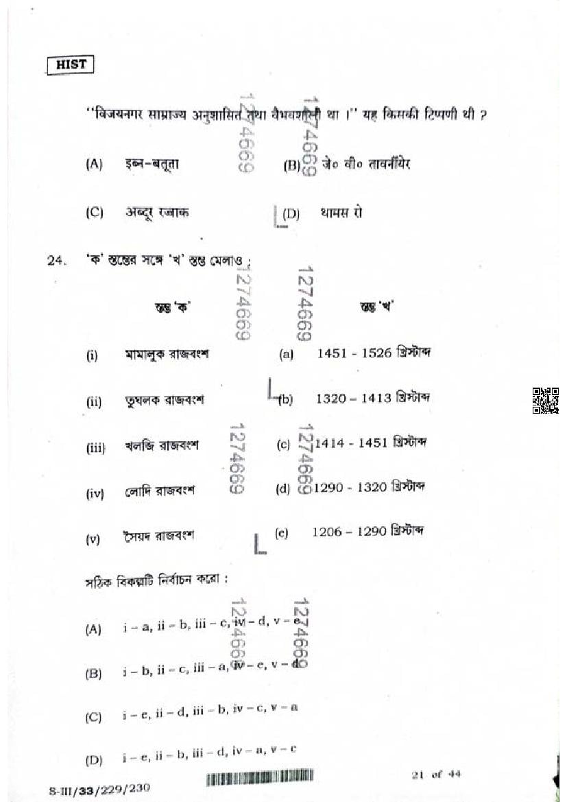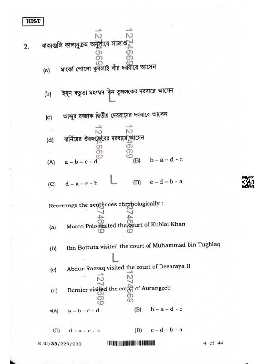 WB HS History Question Paper 2024 PDF Download – Click Here to Download Question Paper PDF