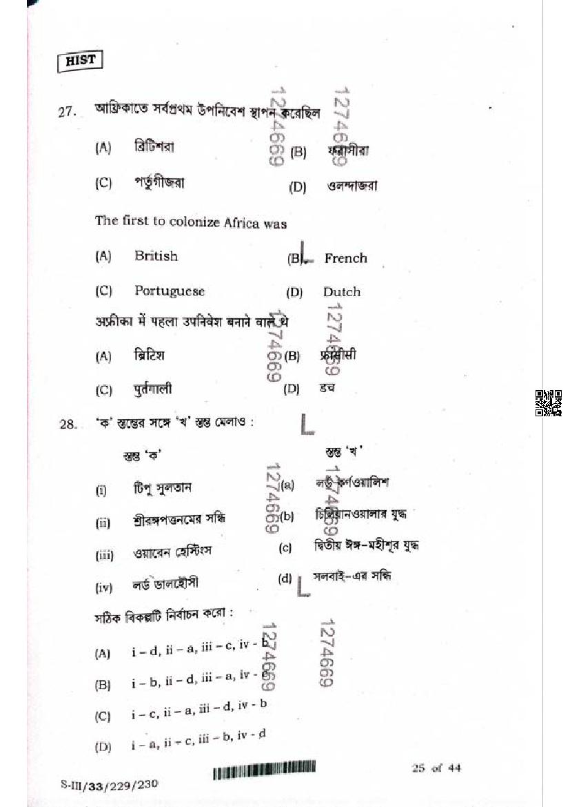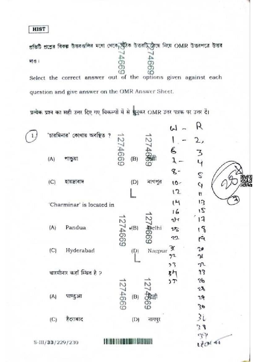 WB HS History Question Paper 2025