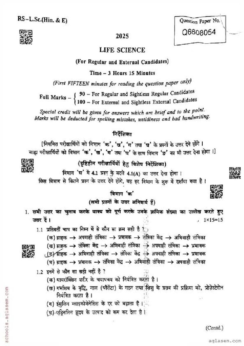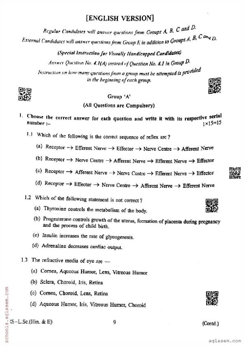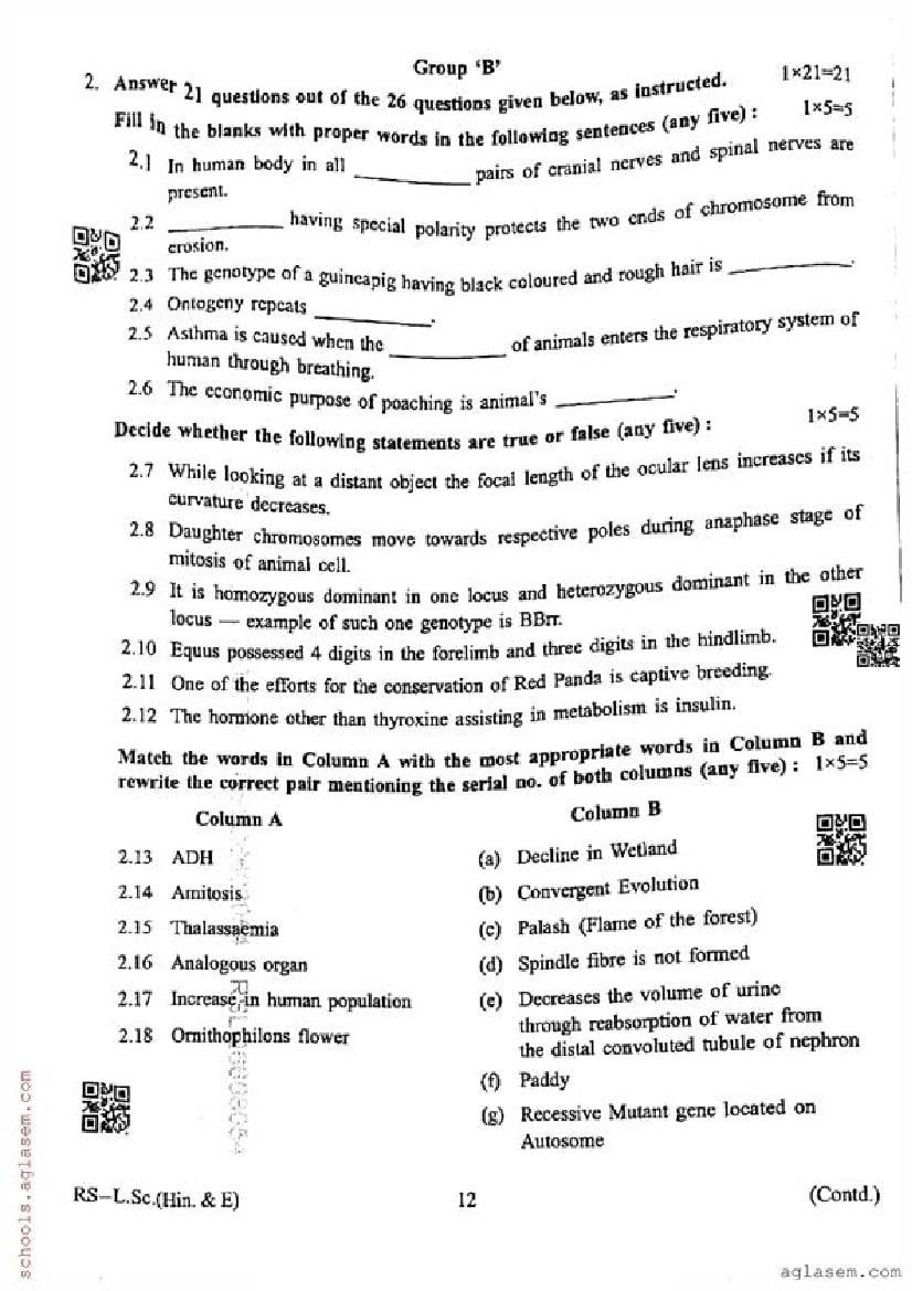 WB Madhyamik Life Sciences Question Paper 2025 is an important study material. You can now download WBBSE Class 10 Question Paper of Life Sciences PDF from here on aglasem. This Madhyamik question paper is of Life Sciences subject and contains actual questions asked in past year board exams. Therefore by solving them you can enhance your preparation for West Bengal Board exam for 10th standard Life Sciences exam and aim to score 100% marks in it.