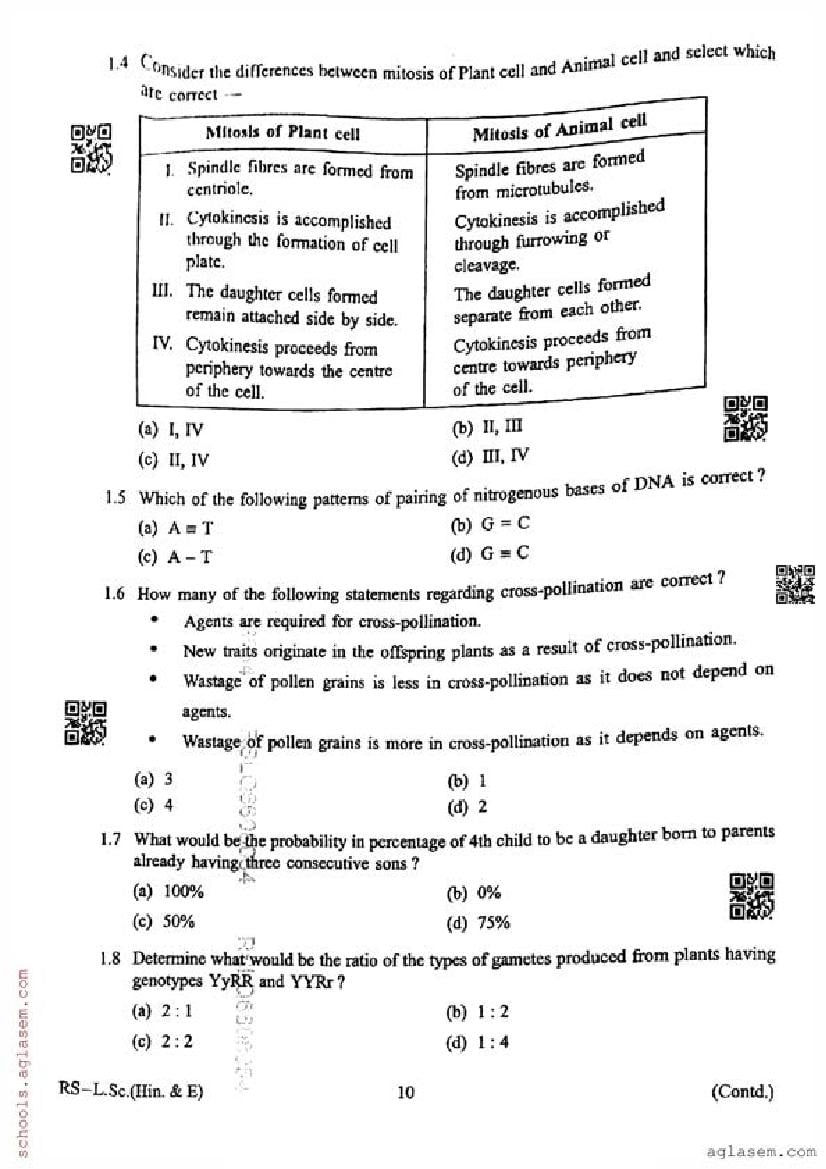 The previous year question paper of West Bengal Board for class 10 (Madhyamik) Life Sciences is as follows.