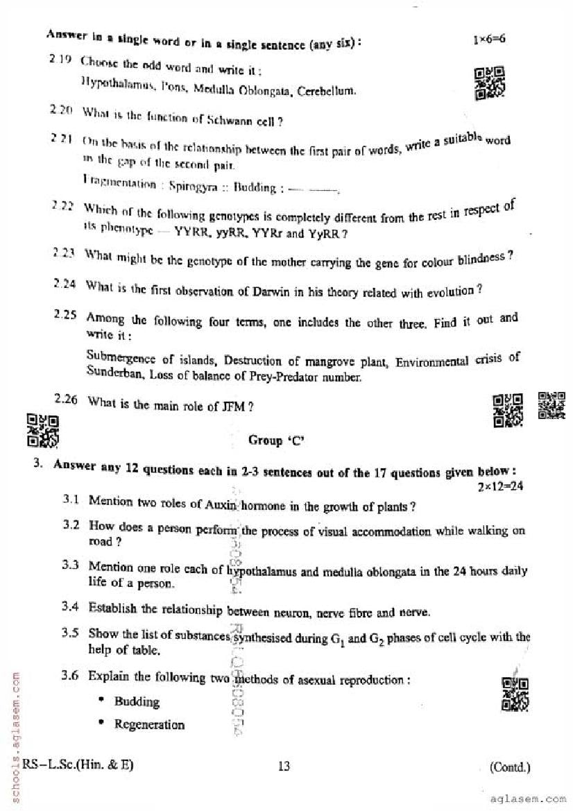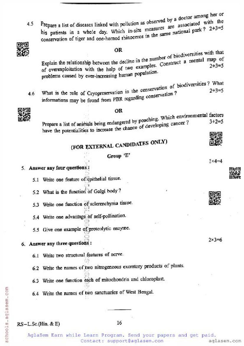 | Study Material Here | Madhyamik Life Sciences Question Paper |