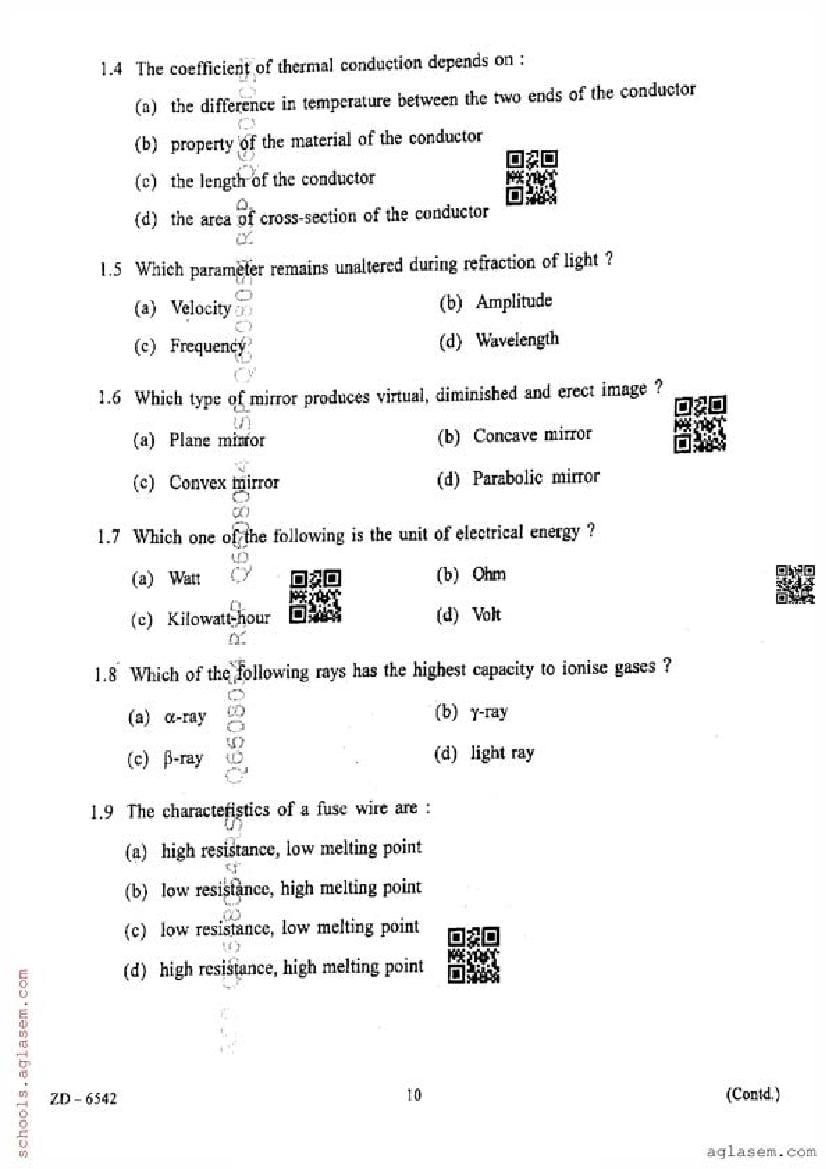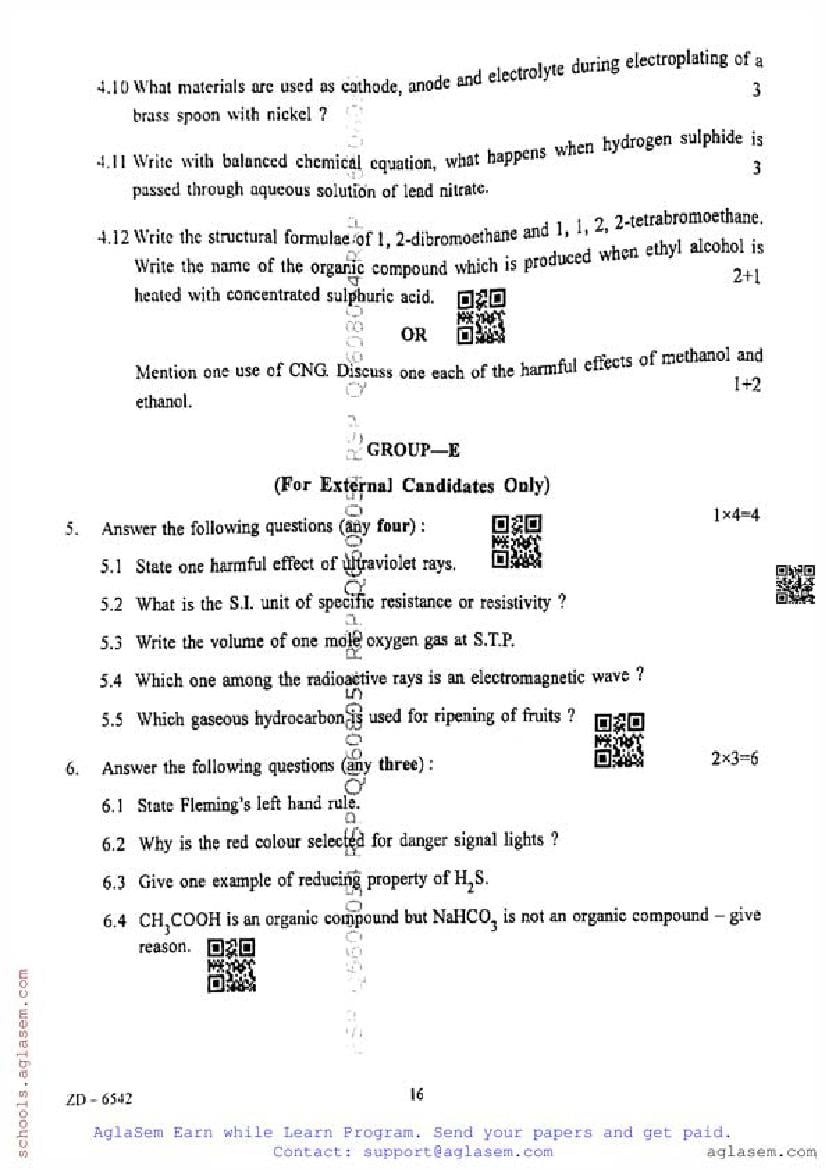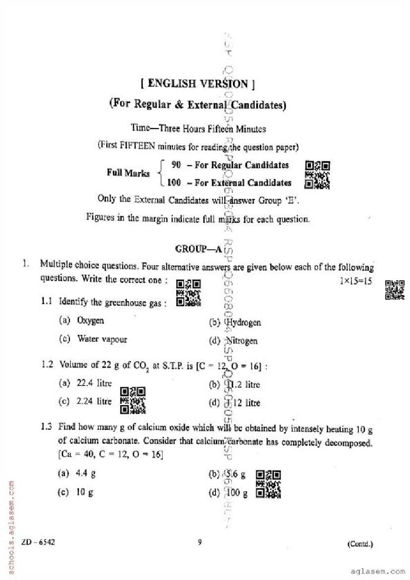 The previous year question paper of West Bengal Board for class 10 (Madhyamik) Physical Sciences is as follows.