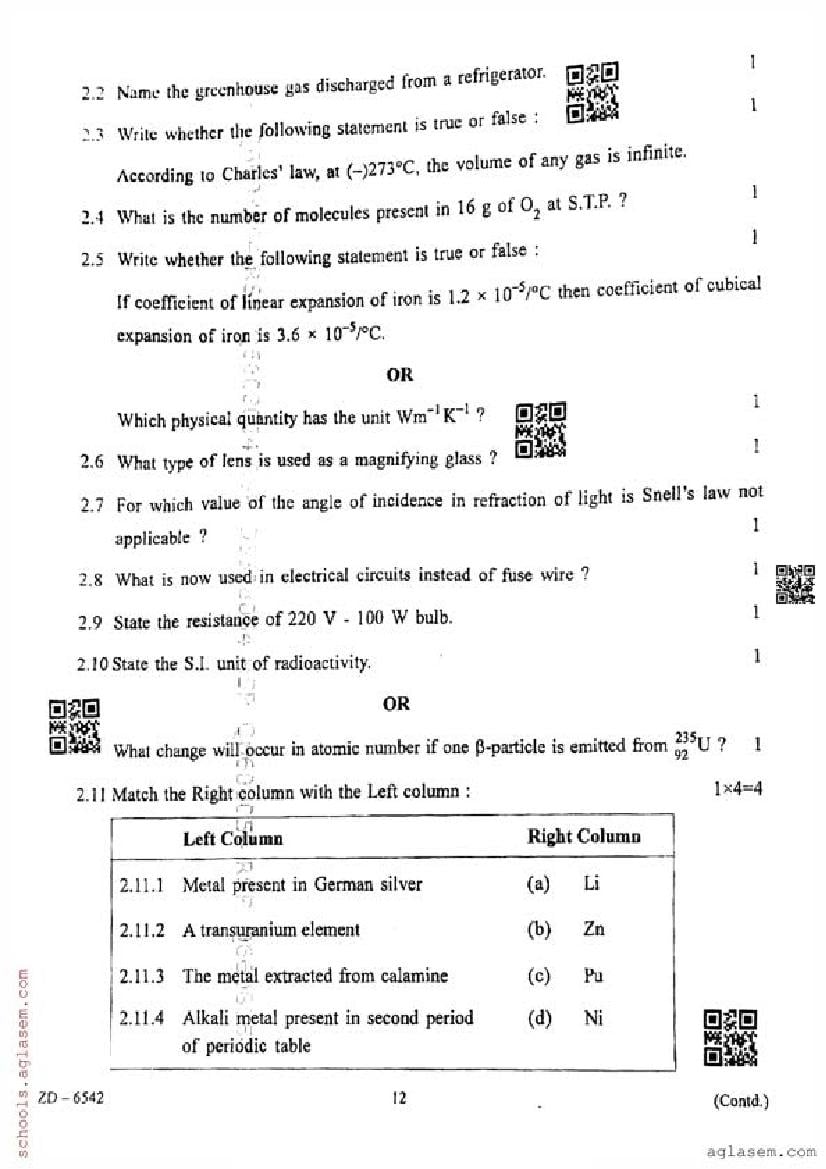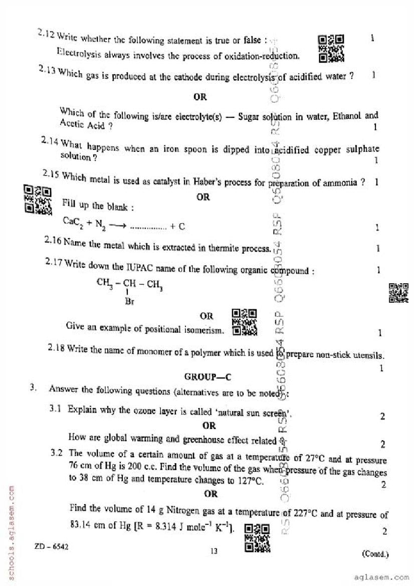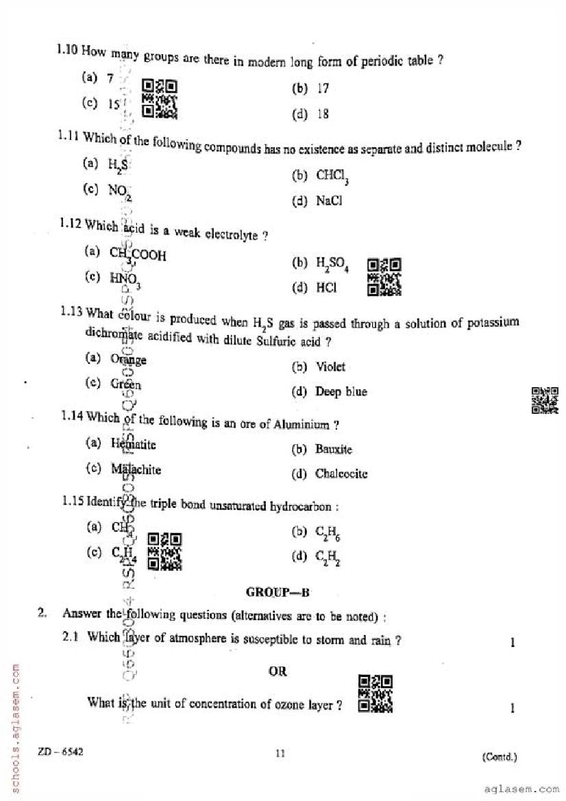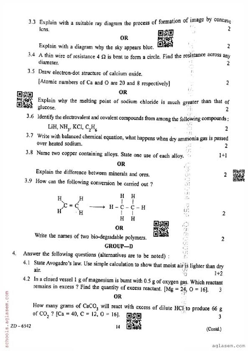 The previous year question paper of West Bengal Board for class 10 (Madhyamik) Physical Sciences is as follows.