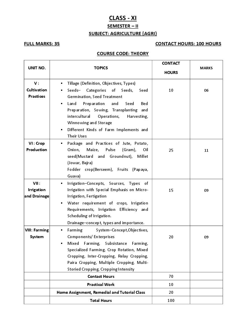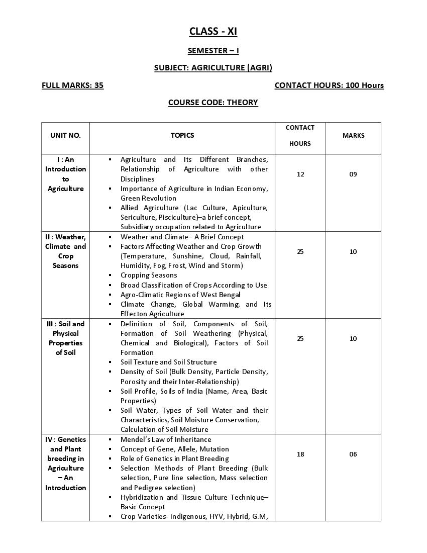 The West Bengal Board syllabus for class 12th Agriculture is as follows.